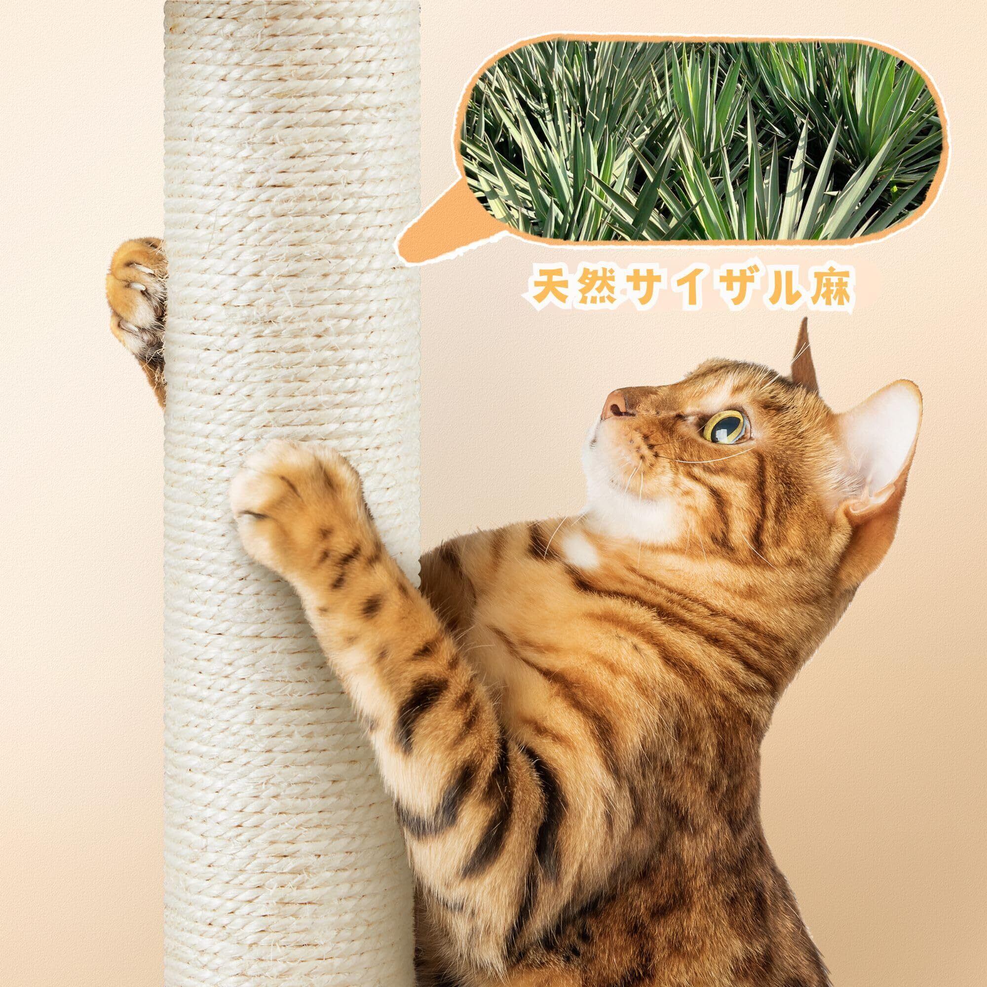 【天然サイザル麻支柱で爪とぎ自由】支柱全体に天然サイザル麻を巻きつけており、ガリガリ思いきり爪とぎ可能。家具や壁の傷みも防げて、猫ちゃんも大満足!