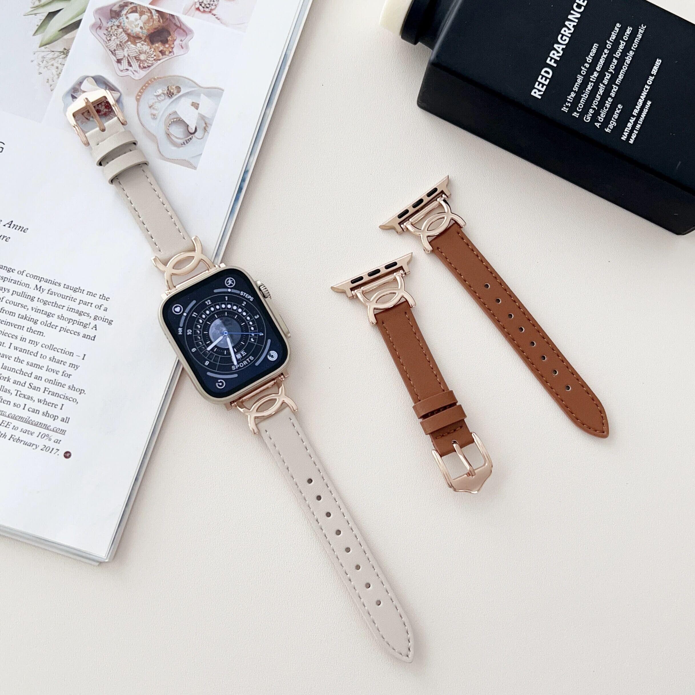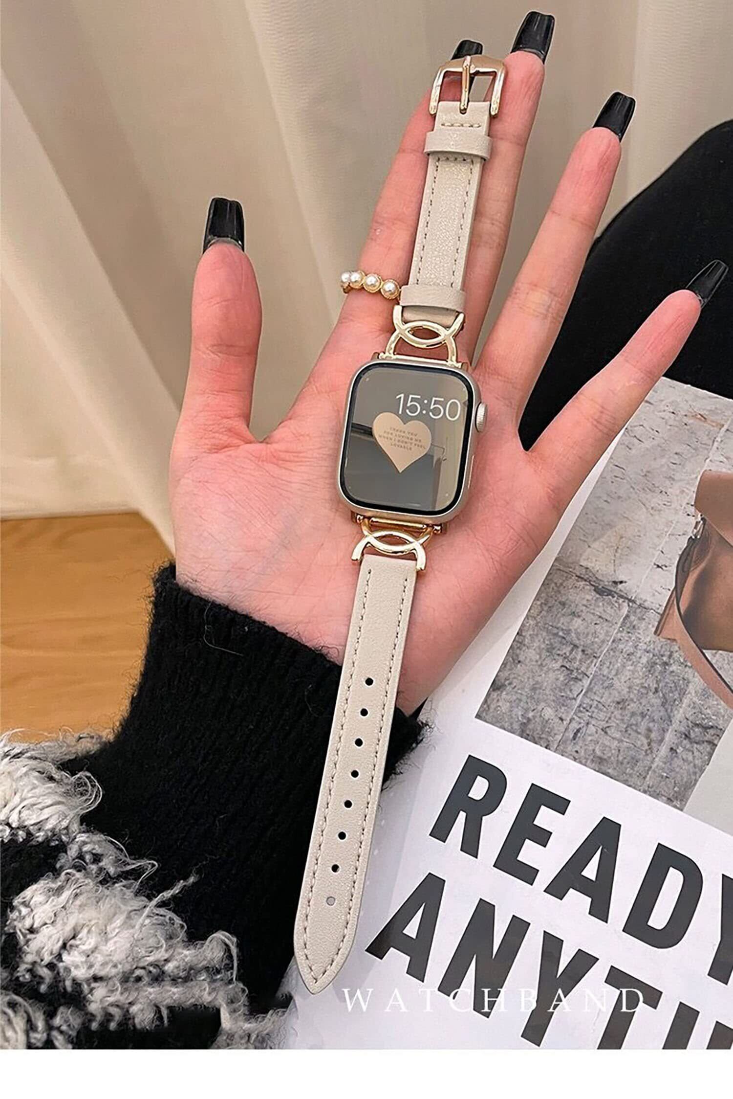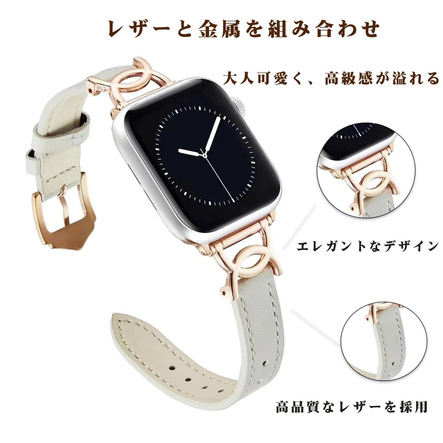 【新しいデザイン】このアップルウォッチ用のバンドは高級感のあるレザーとローズゴールドの金属を組み合わせが大人可愛く、どんなコーディネートにもお使いいただけます。シンプルながらもユニークで知的なデザインはオフィスシーンにもおすすめです。