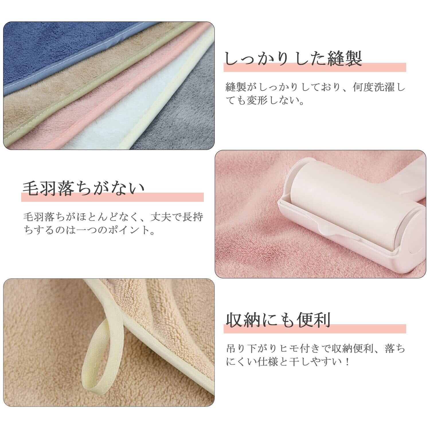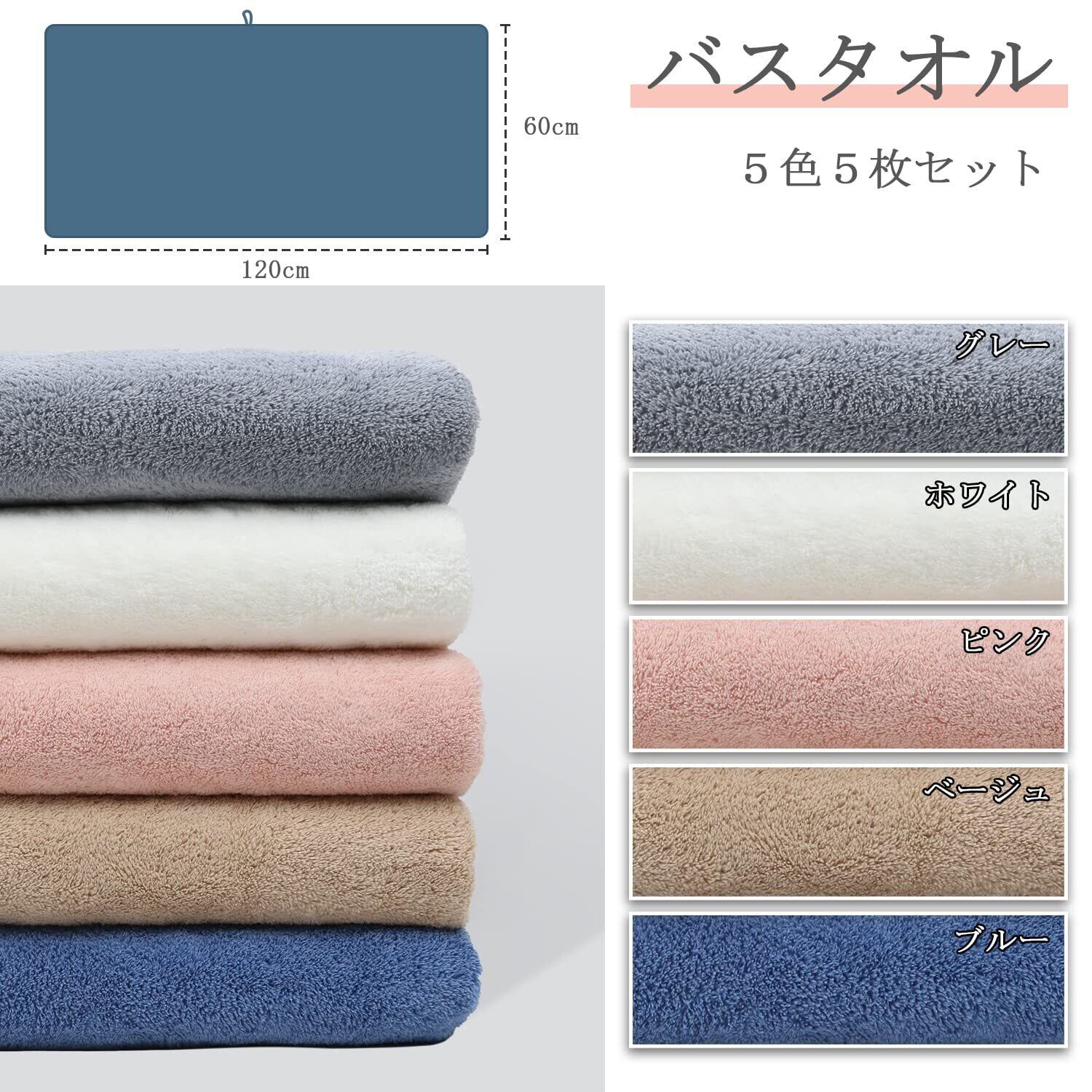 【バスタオル 5枚セット】素材:マイクロファイバー サイズ:約60x120cm/枚 セット内容:バスタオル 5色5枚セット カラー:グレー、ブルー、ホワイト、ベージュ、ピンク