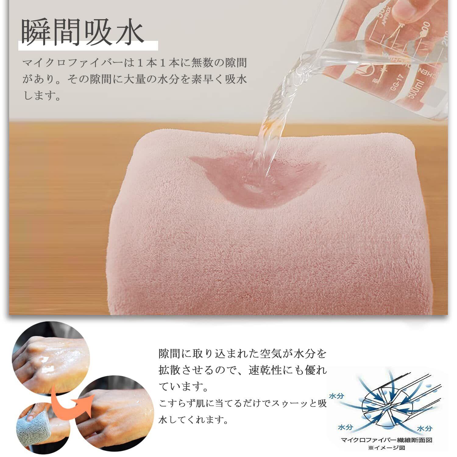 【ふわふわと柔らかい】通常のタオルより細番手の上質マイクロファイバーを採用し、ふわふわとしたやわらかい肌触りに仕上げました。低摩擦でお肌を優しく包み込んでくれます。肌や髪の傷みが気になる人や敏感肌の方や赤ちゃんにも最適です。