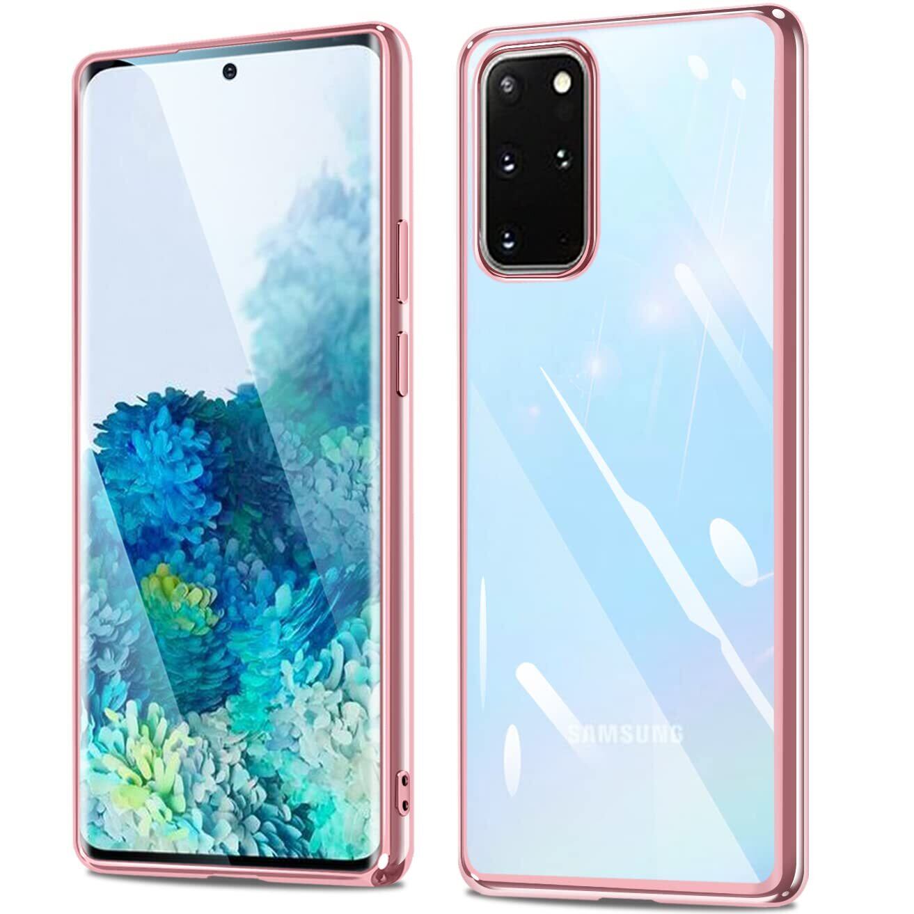 Galaxy S20 plus ケース クリア ギャラクシーs20+ SC-52A SCG02 カバー 透明 耐衝撃 軽量 薄型 tpu 背面クリア メッキ加工 スマホケース ソフト ストラップホール付き ワイヤレス充電対応(galaxyS20+, ローズゴールド)