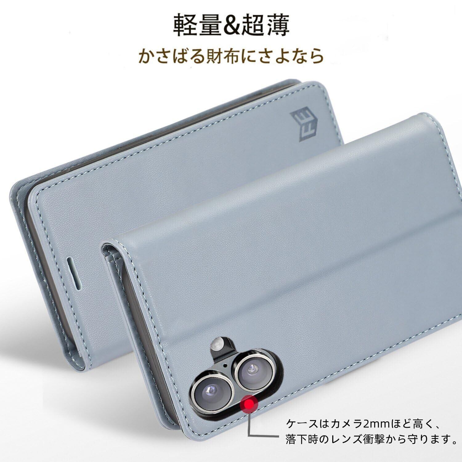 FeeY iphone16ケース 手帳型 Iphone16手帳 ケース 耐衝撃TPU素材カード収納 マグネット内蔵スタンド機能付き アイフォン16携帯カバー全面保護 iPhone 16スマホケース 6.1インチ対応,ライトブルー