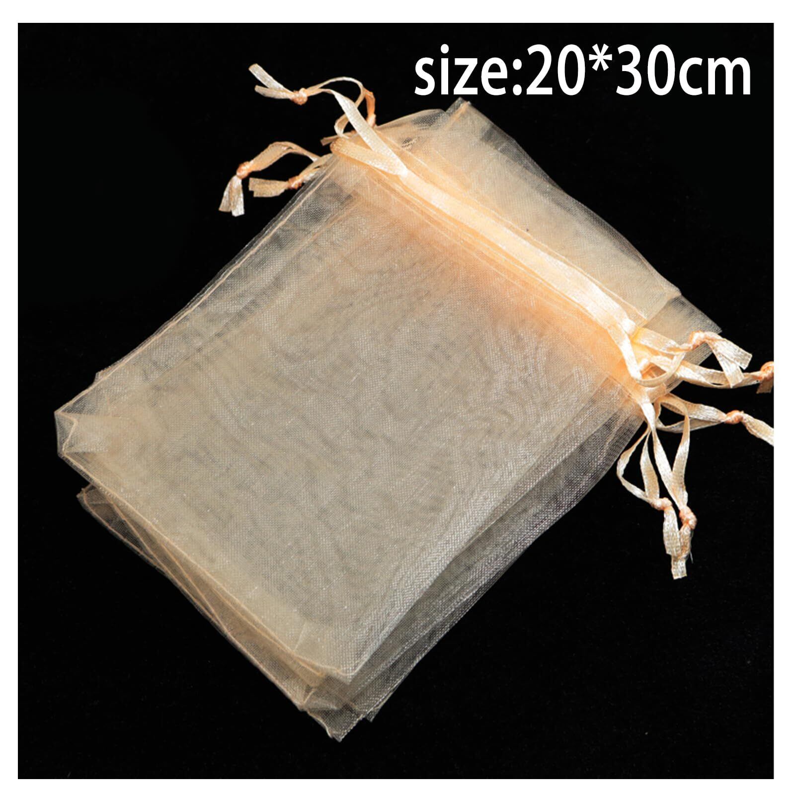 RAFEIO ラッピング 袋 オーガンジー 巾着袋 20*30cm 20枚 大 透明 ラッピング プレゼント 袋 大きめ ハロウィン 袋 小分け袋 無地 ギフトラッピング 結婚式 誕生日 母の日(ローズゴールド)