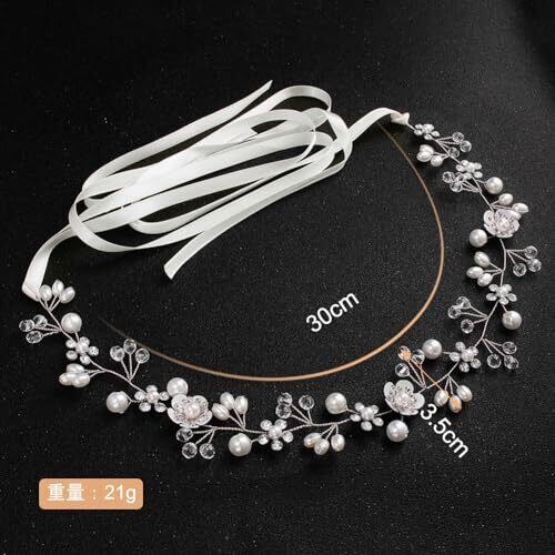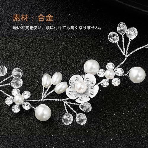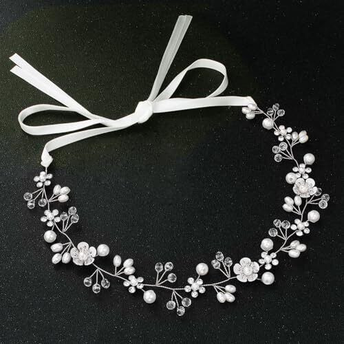 サムコス 髪飾り 花 パール 花かんむり リボン ホワイト ヘッドドレス クリスタルビーズ 花冠 ヘアアクセサリー 結婚式 発表会 披露宴 卒業式 パーティー ダンス 和装 撮影 写真 子供 大人用 (A,シルバー)
