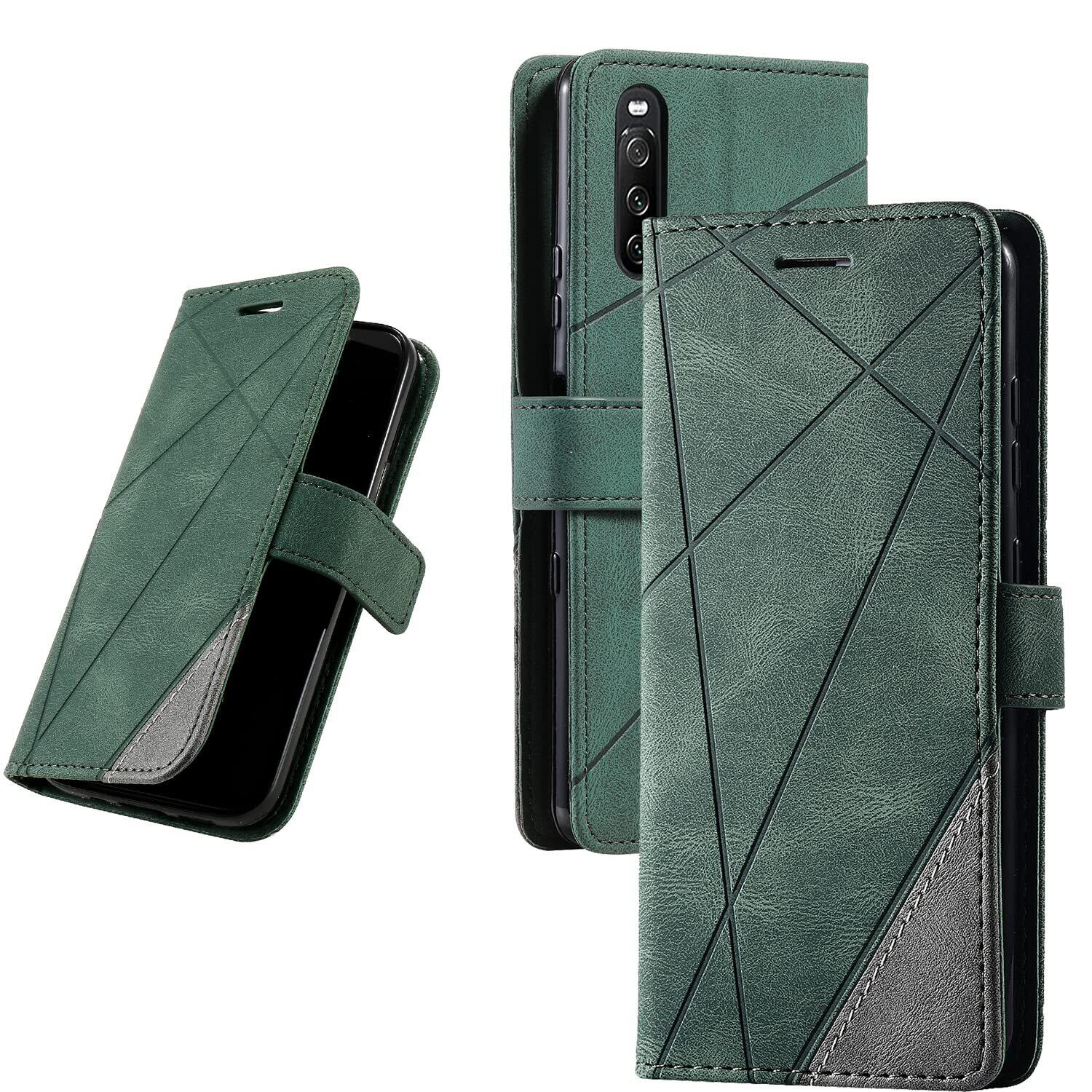 UnivoColors Sony Xperia 10 III(SO-52B/SOG04)/Sony Xperia10 III Lite(XQ-BT44)兼用手帳型ケース カード収納 スタンド機能 サイドマグネット TPUケース 軽量 ストラップ付き QI充電対応 横置き機能 防指紋 レンズ保護 全面保護 (グリーン)