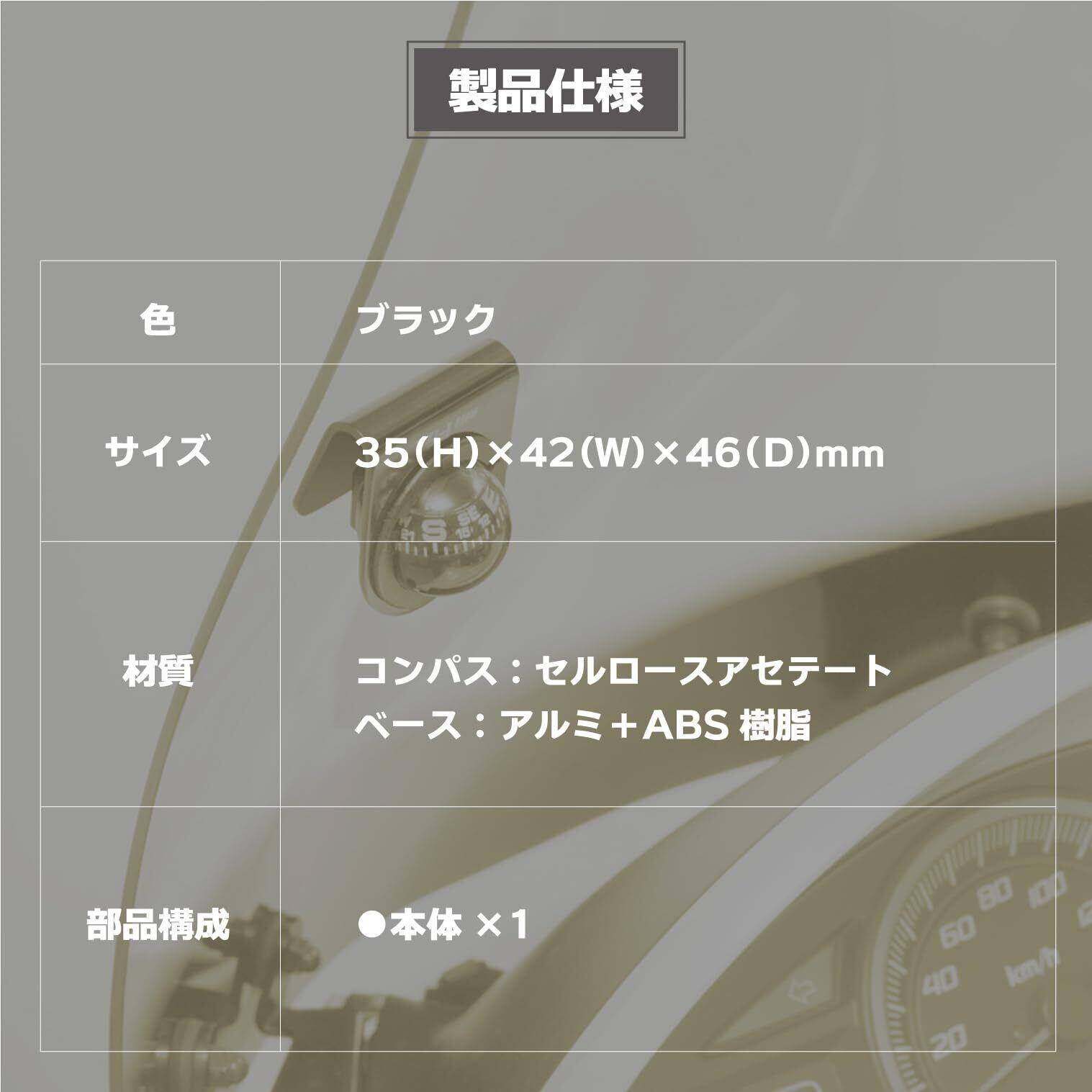●製品サイズ:(H)35×(W)42×(D)46mm●コンパス素材:セルロースアセテート●ベース素材:アルミ+ABS樹脂●原産国:日本
