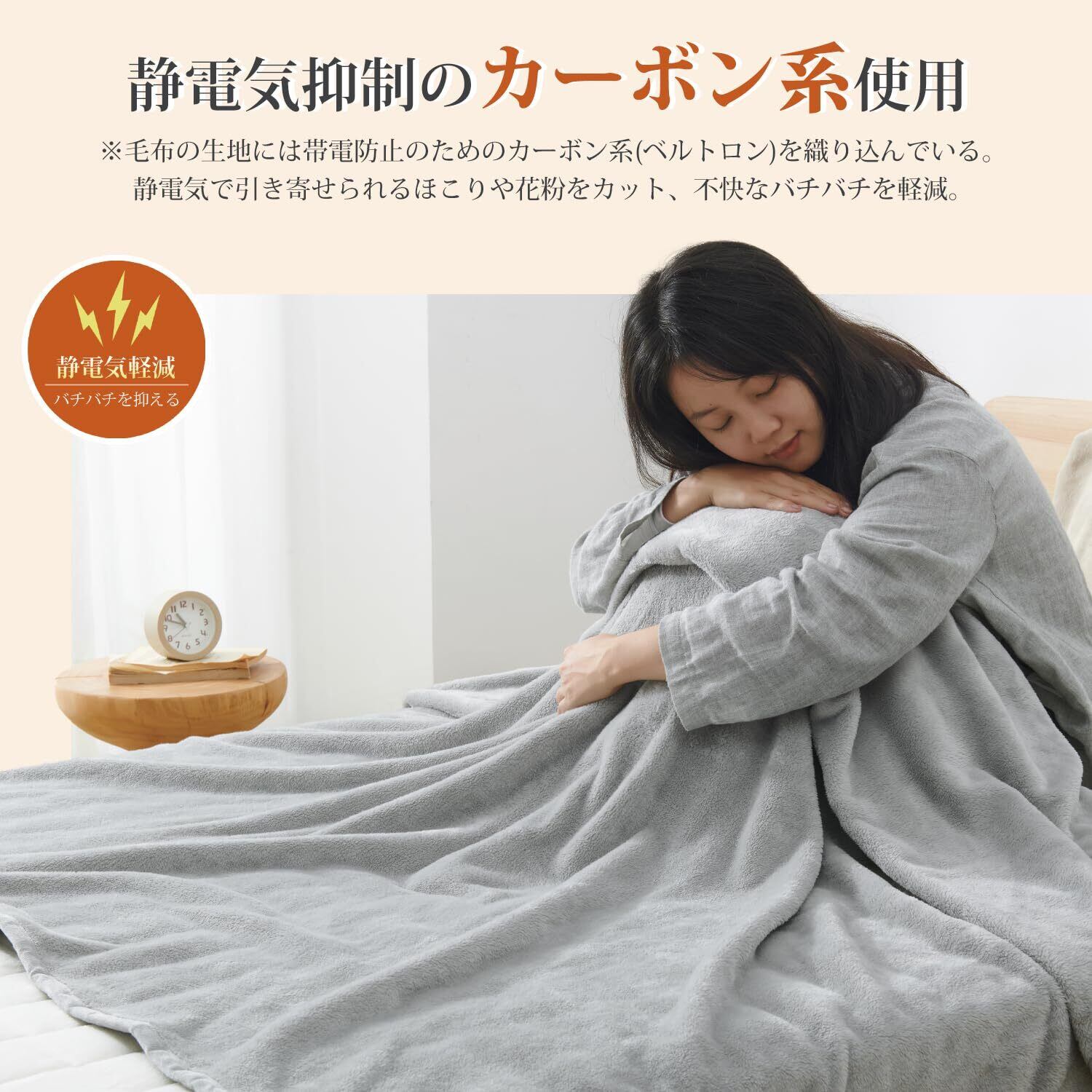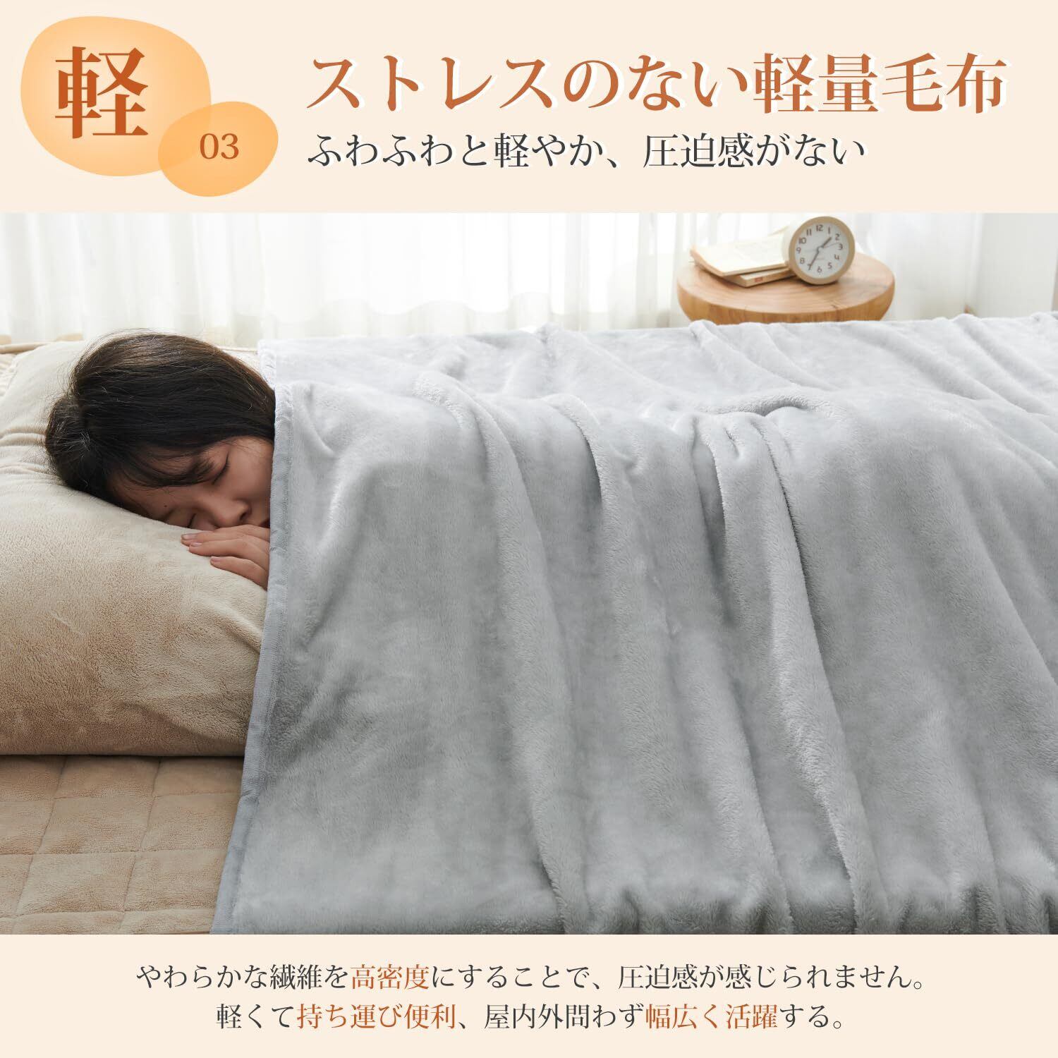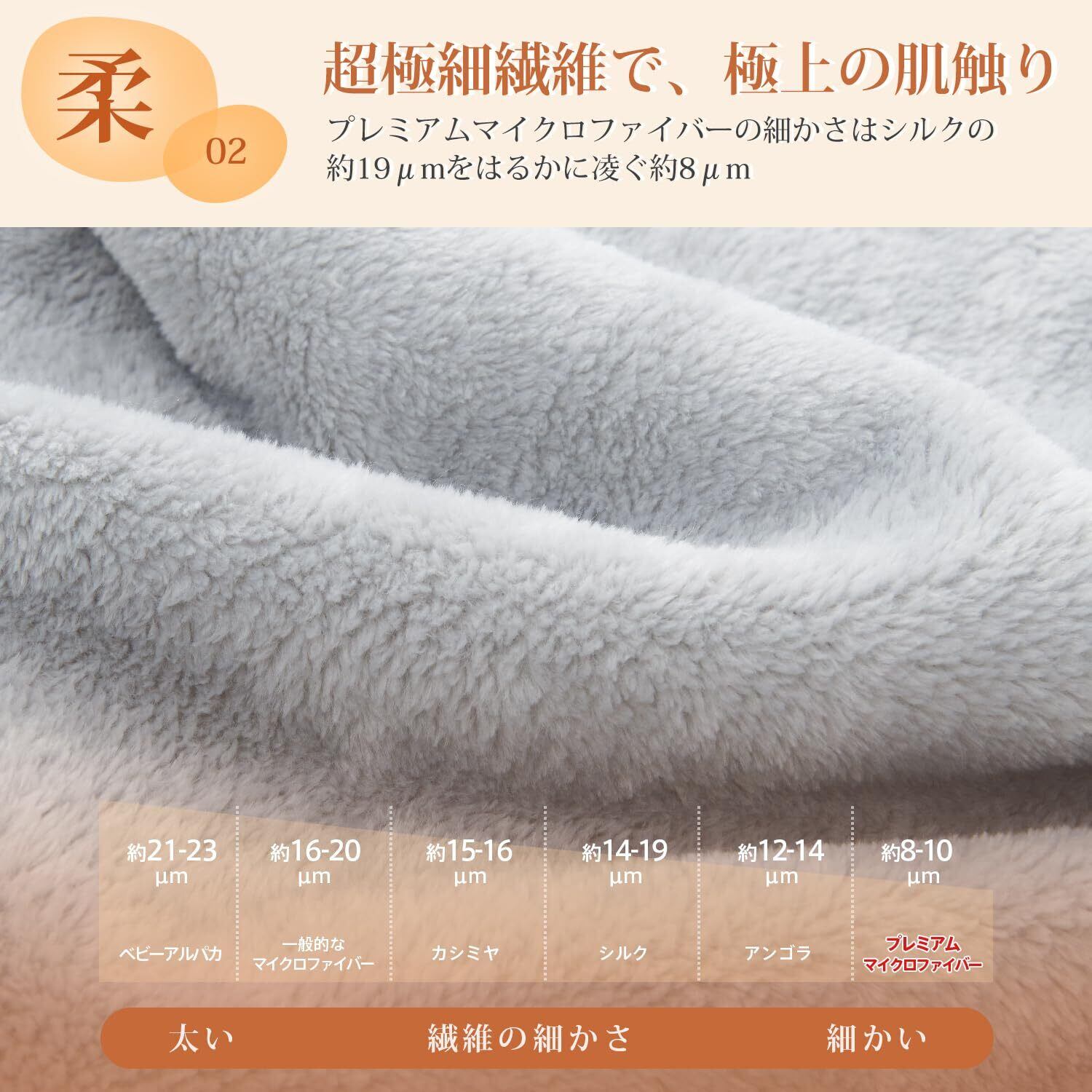 <ふんわり、なめらか>:毛布は高密度フランネルマイクロファイバー生地を採用しています。キメ細やかな繊維が、ふんわりで柔らかな肌触りを与え、体を優しく包み込みます。