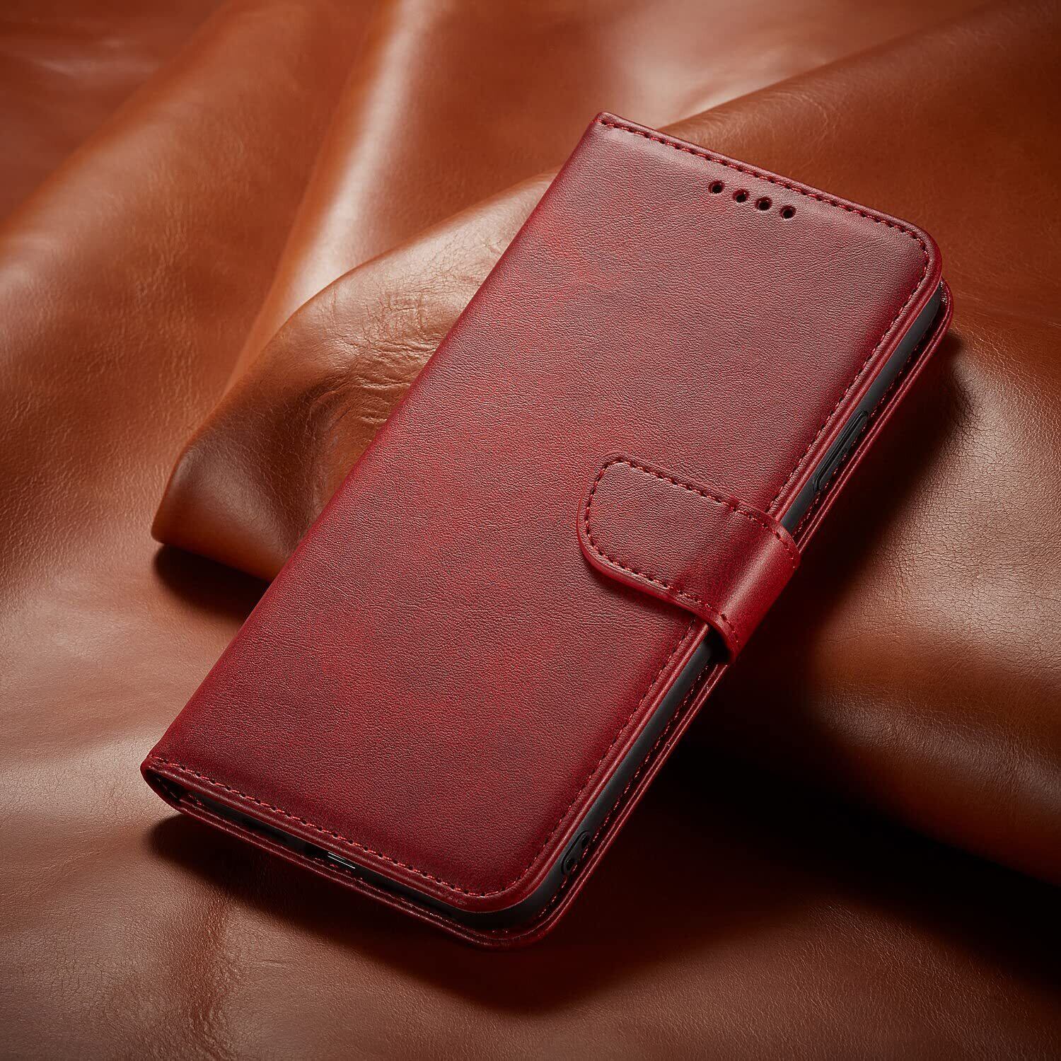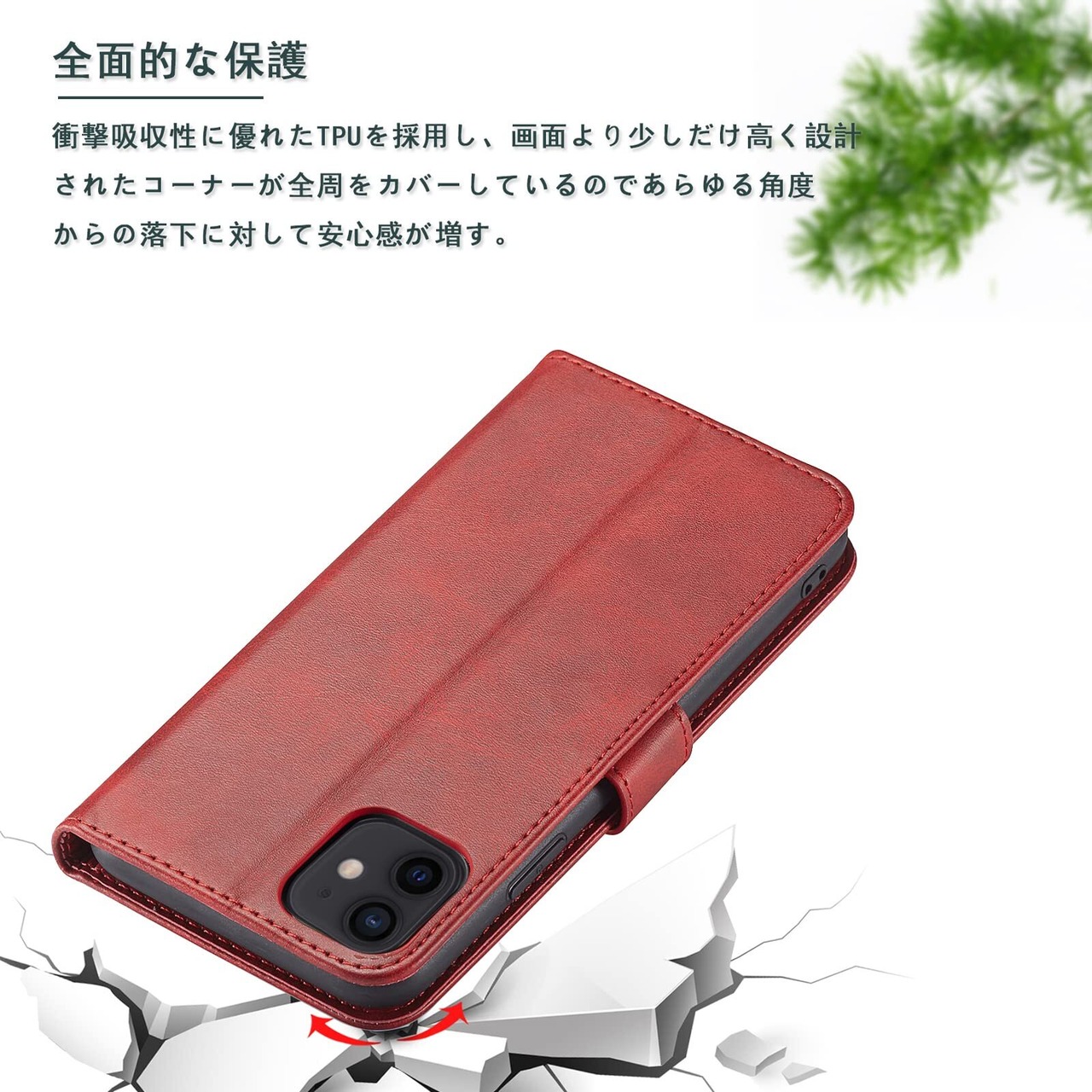 PinLiSheng iPhone 11 ケース 手帳型 スマホケース 手帳型 携帯カバー レザー 軽量 薄型 耐衝撃 耐摩擦 全面保護 マグネット式 カード収納 スタンド機能 iphone11ケース 6.1 インチ対応(iPhone11, 赤いバックル)