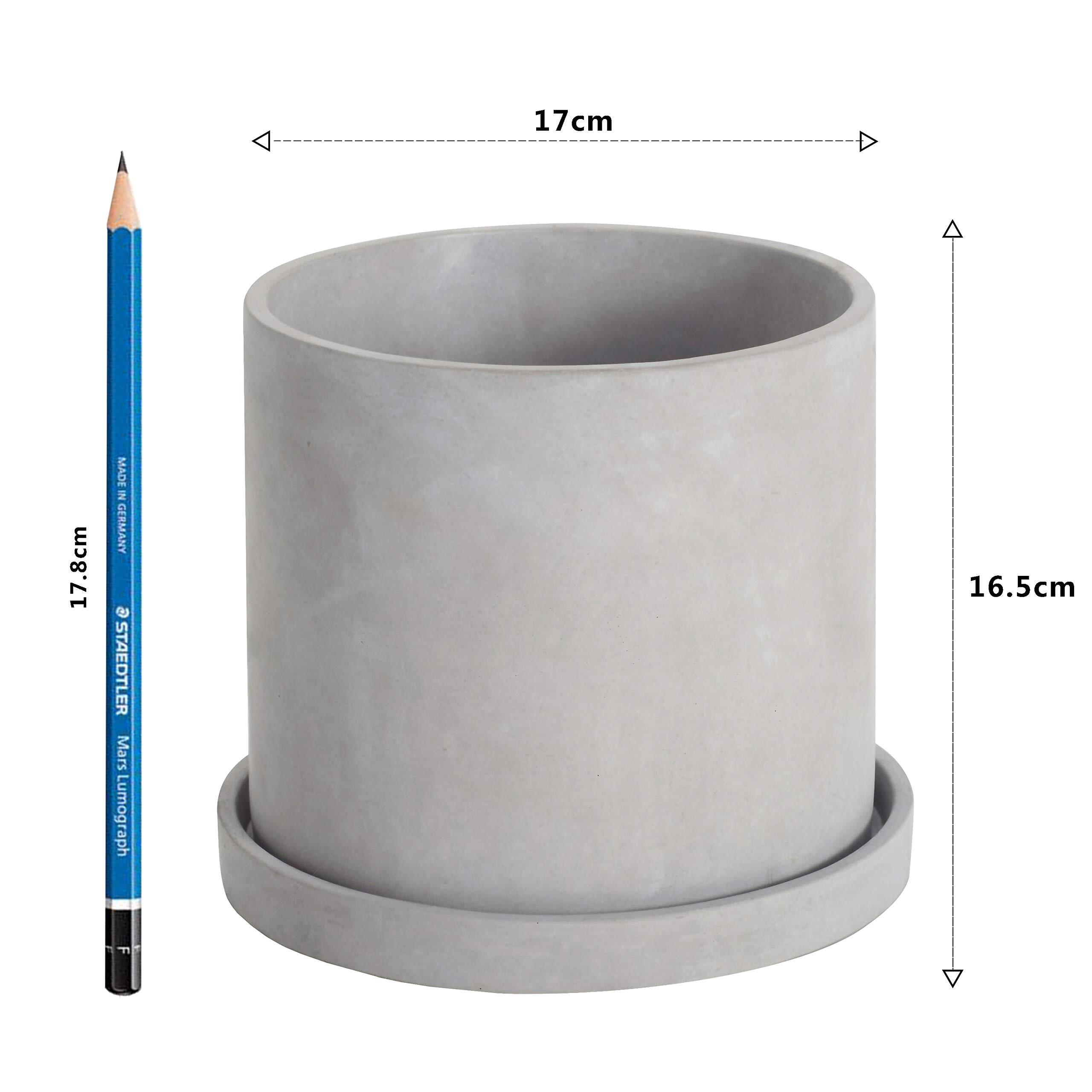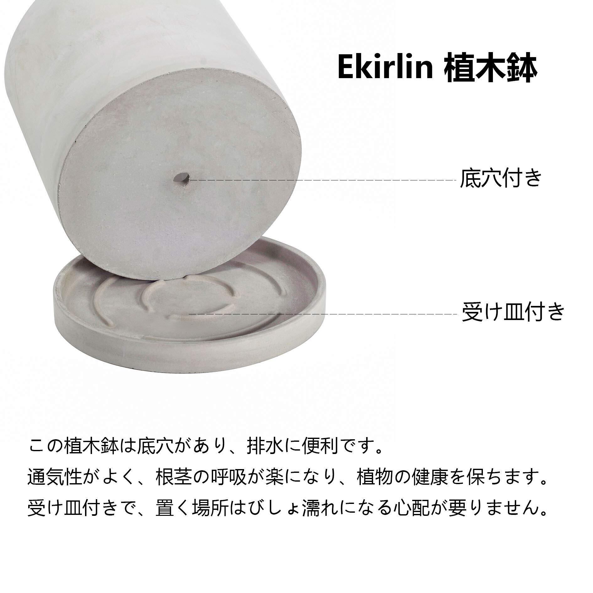 Ekirlin 植木鉢 セメント 鉢 受け皿付き 観葉植物 円筒形鉢 プランター 6号 16.5cm おしゃれ コンクリート 底穴あり シンプル グレー