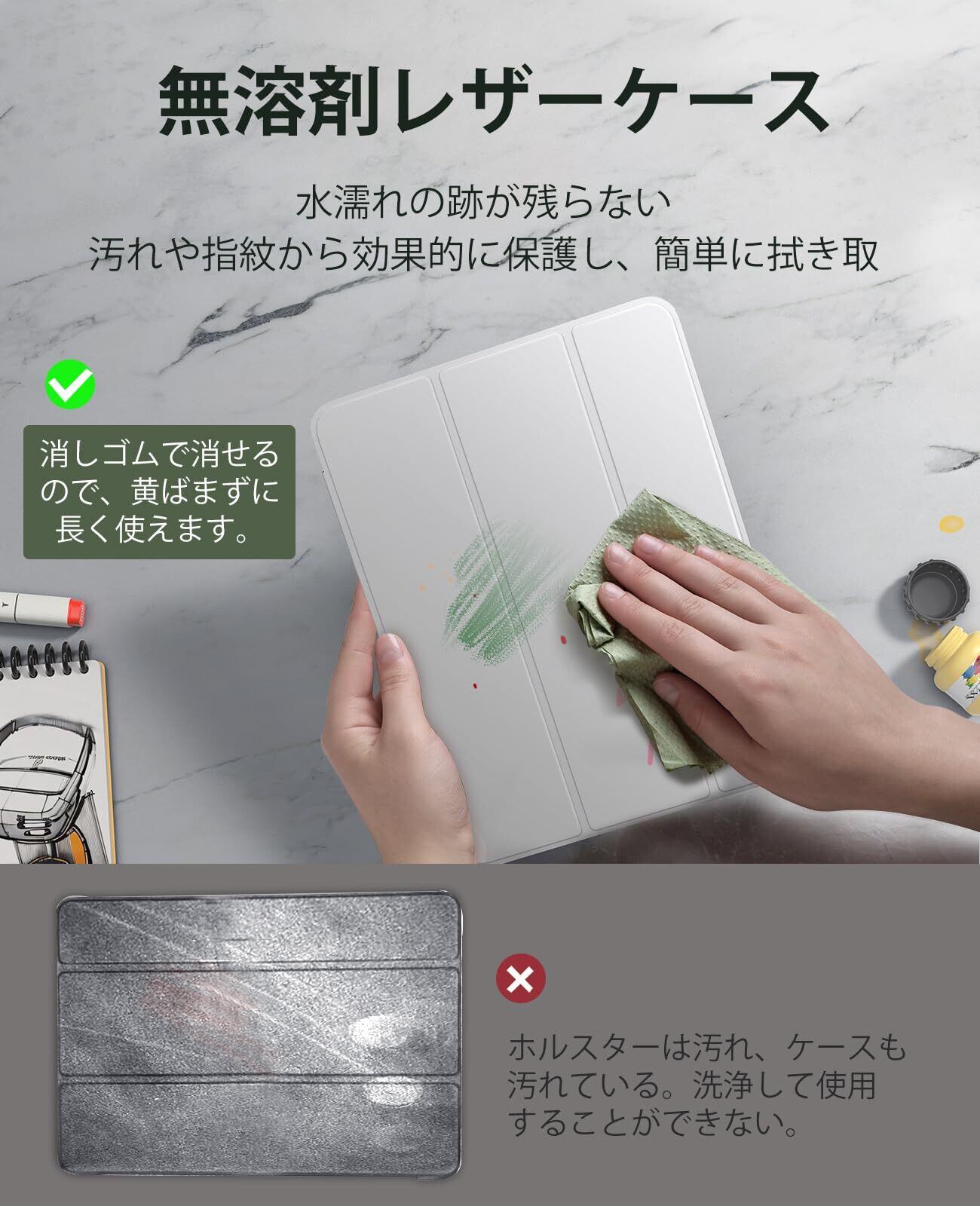 【防汚技術で滑らかな表面】保護カバーの表面レザーは防汚技術素材を採用し、油脂、インク、ほこりなどを簡単に拭き取ることができ、新しい外観を保つことができます。TPU素材のシェルは、耐久性、耐衝撃性に優れ、大切なデバイスを保護し、iPad第10世代に全方位の保護と開口部を与えるように作られています。