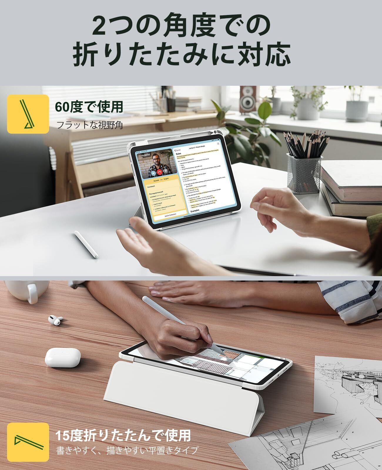 【高速オートスリープ/ウェイク】完璧に適応したiPad 10世代は、カバーの開閉に応じてデバイスを瞬時にウェイクアップとハイバネートに切り替えることができ、便利でiPadのバッテリーを節約できます。