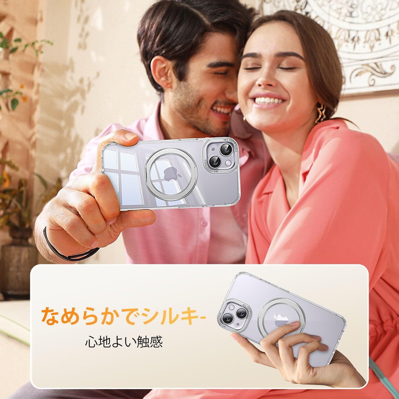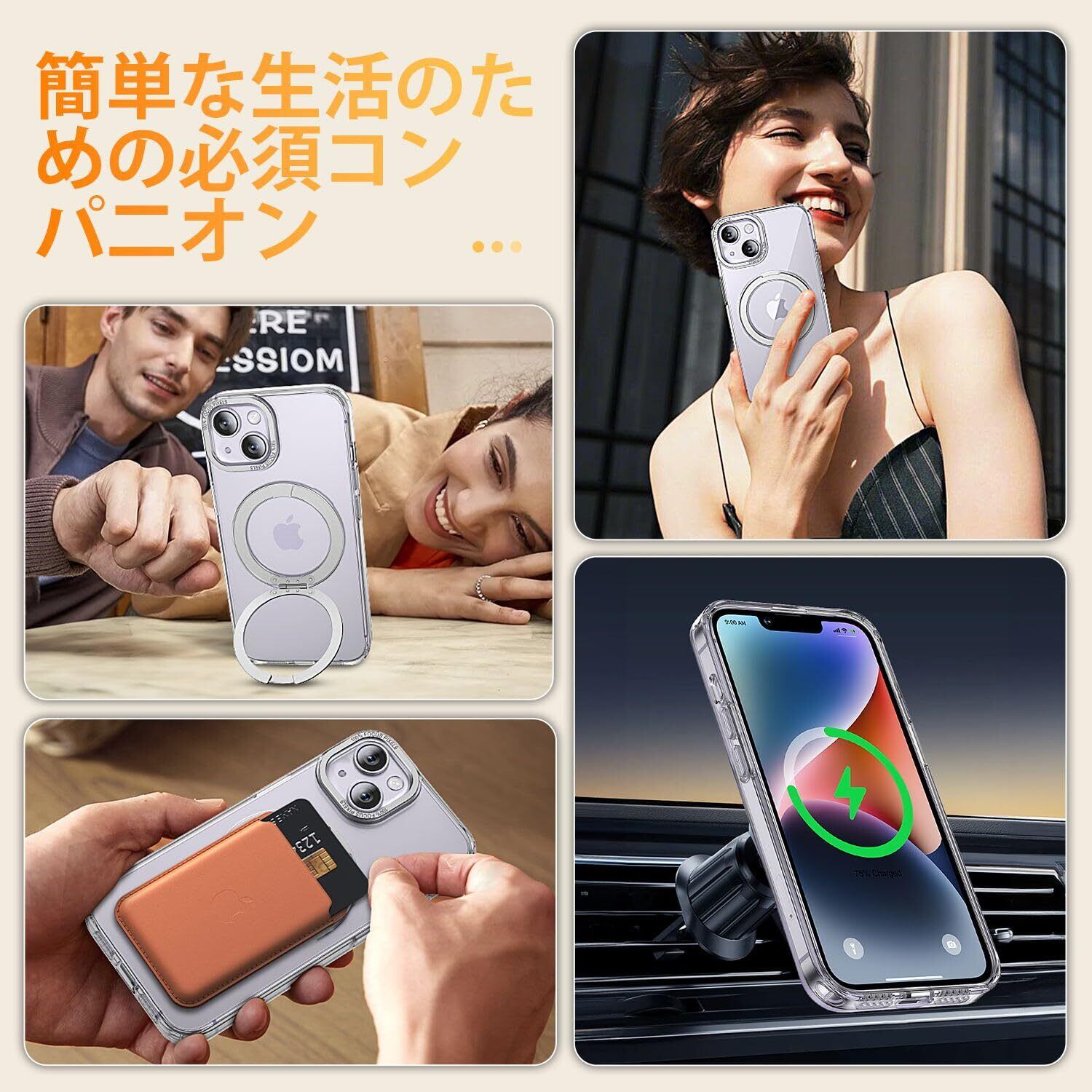 【MagSafe対応】アイフォン14 ケース/アイフォン13 ケースをつけたままマグセーフ機能を快適に使用できます。背面に薄くて強いマグネット内蔵しています、ワイヤレス充電や車載ホルダーやアクセサリとのあらゆる充電に安定で接着ができ、差し込みのいらないより簡単により素早く充電できます