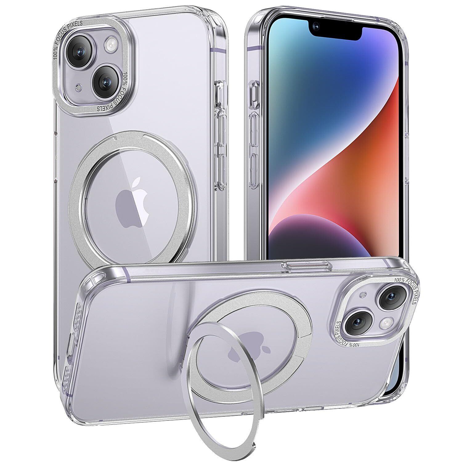 【Magsafe対応・スタンド付き】Mcoifull iPhone14 ケース iPhone13 ケース マグネット搭載 ワイヤレス充電 耐衝撃 マット感 半透明 指紋防止 アジャスタブルスタンド アイフォン14 ケース アイフォン13 ケース クリア