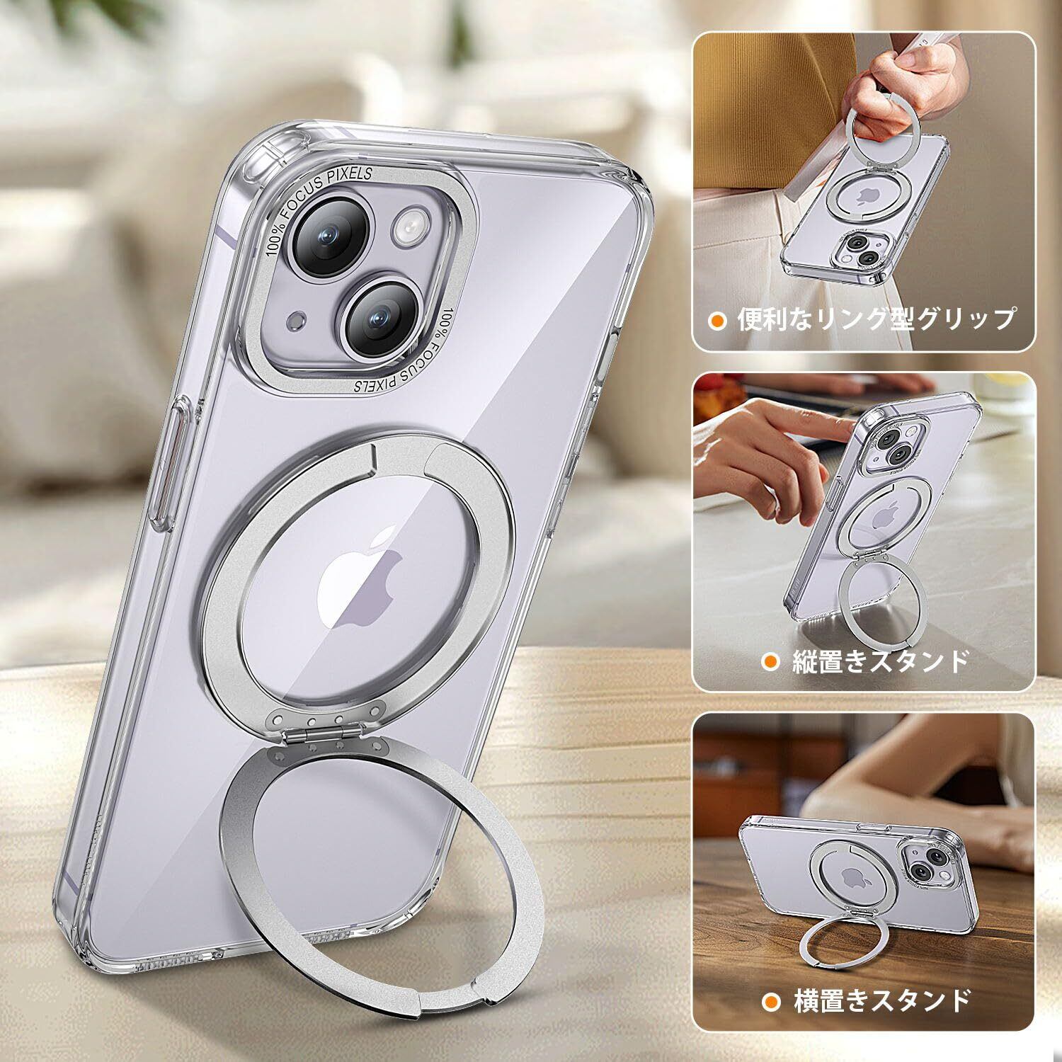 【捻れば最適な角度】精密な機械工学により、捻るたびに機械式腕時計の巻き上げのようなカチッとした音と感触を生む。角度安定。仕事中は情報確認やビデオ会議、通勤時の情報チェック可。リングとしても使用可。"プライベート"は息抜きではなく、視野を変える時。映像やゲーム、写真やSNSチェック、家族との連絡など、多彩なシーンで活躍!(iphone 14 ケース/iphone 13 ケース)