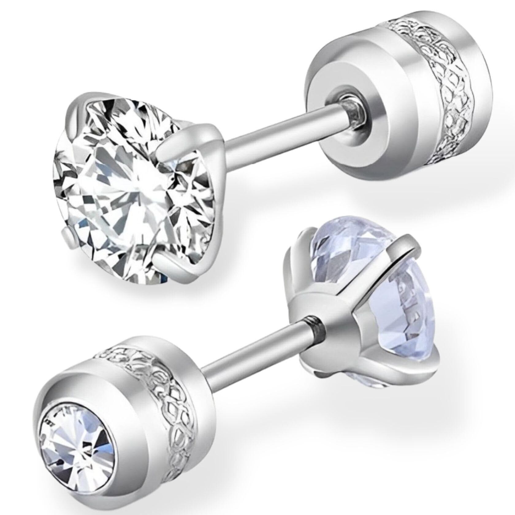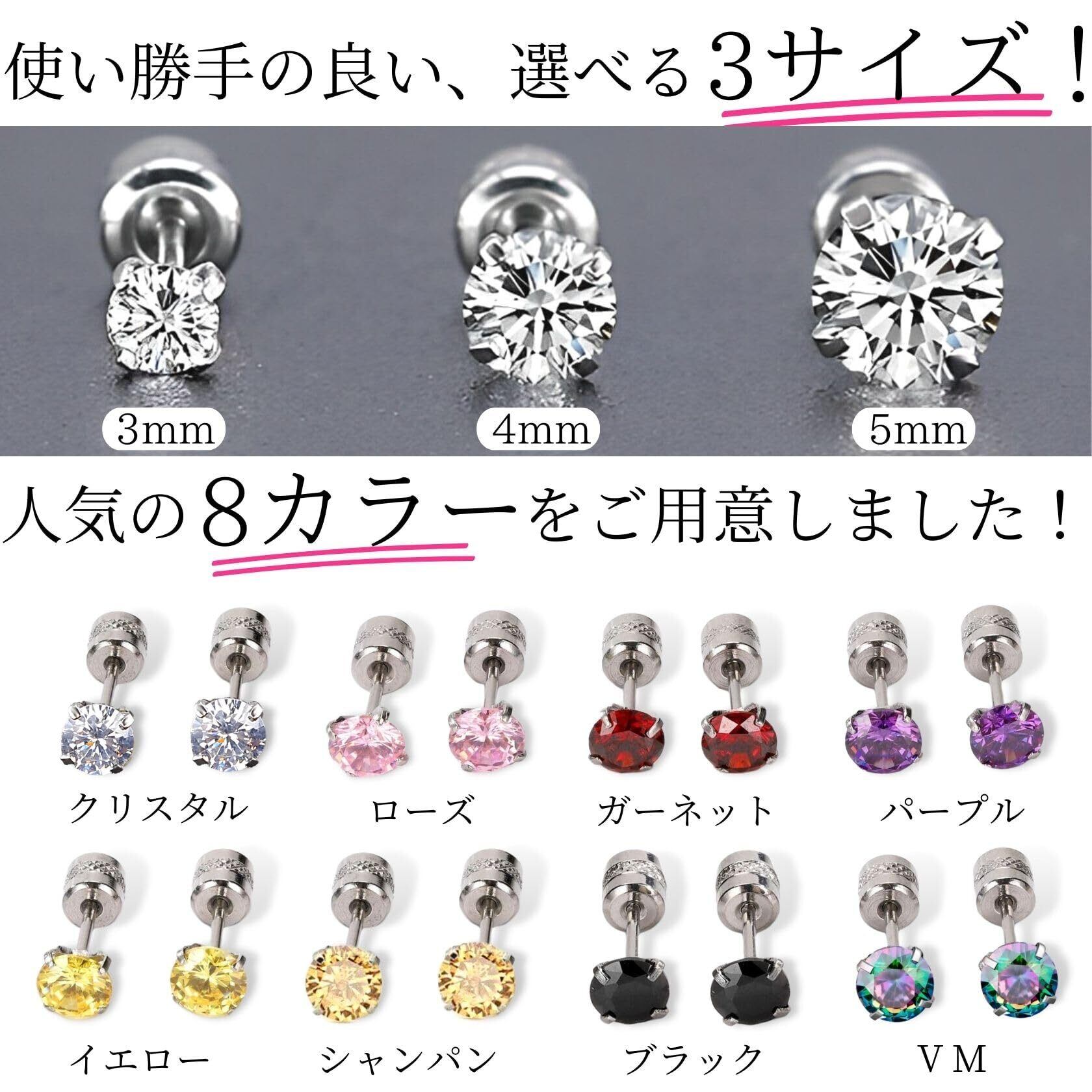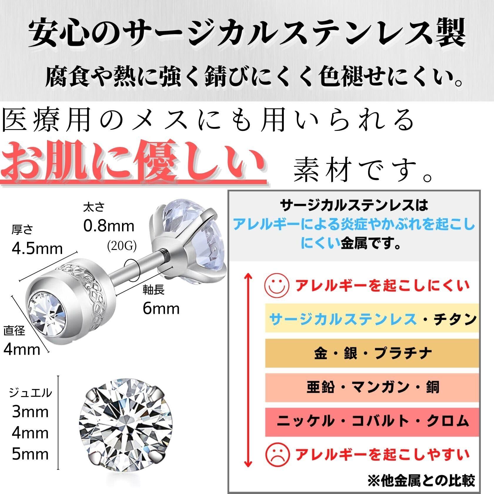 [swars] ピアス レディース サージカルステンレス 金属アレルギー対応 ファーストピアス セカンドピアス ネジ式 シンプル 両耳 2個セット (5mm, クリスタル)