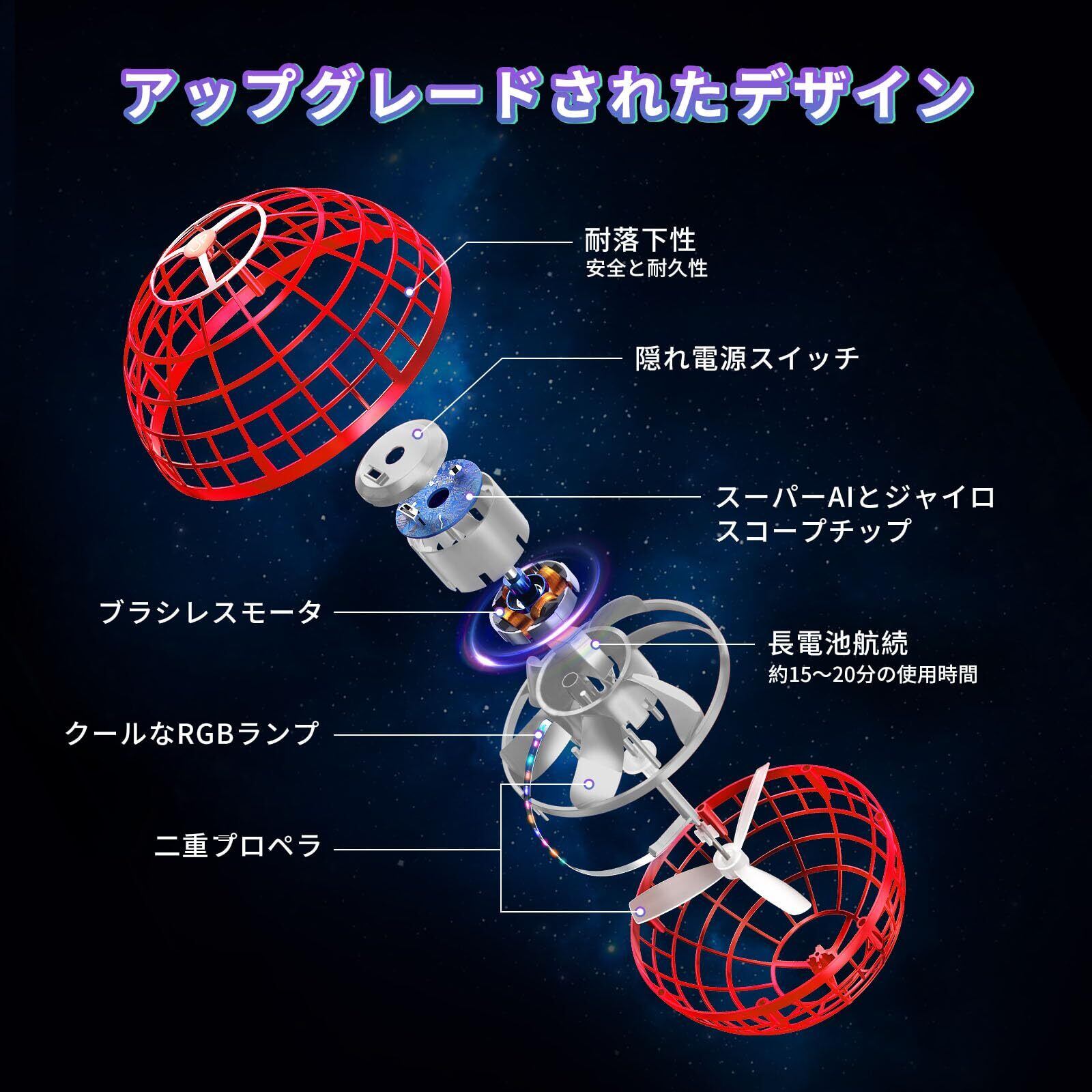 XINHOME フライング ボール 正規品 おもちゃ 面白 光る UFOおもちゃ フライングボール ブーメラン スピナー ハンド コントローラ ミニドローン 人気 子供 2 3 4 5 6 7歳 男の子 女の子 クリスマスプレゼント (赤)