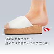かかと部分が短めにカットされているので、履くだけで自然とつま先立ちになって、体幹が鍛えられるスリッパ。美腹、美尻、美脚が期待できます。