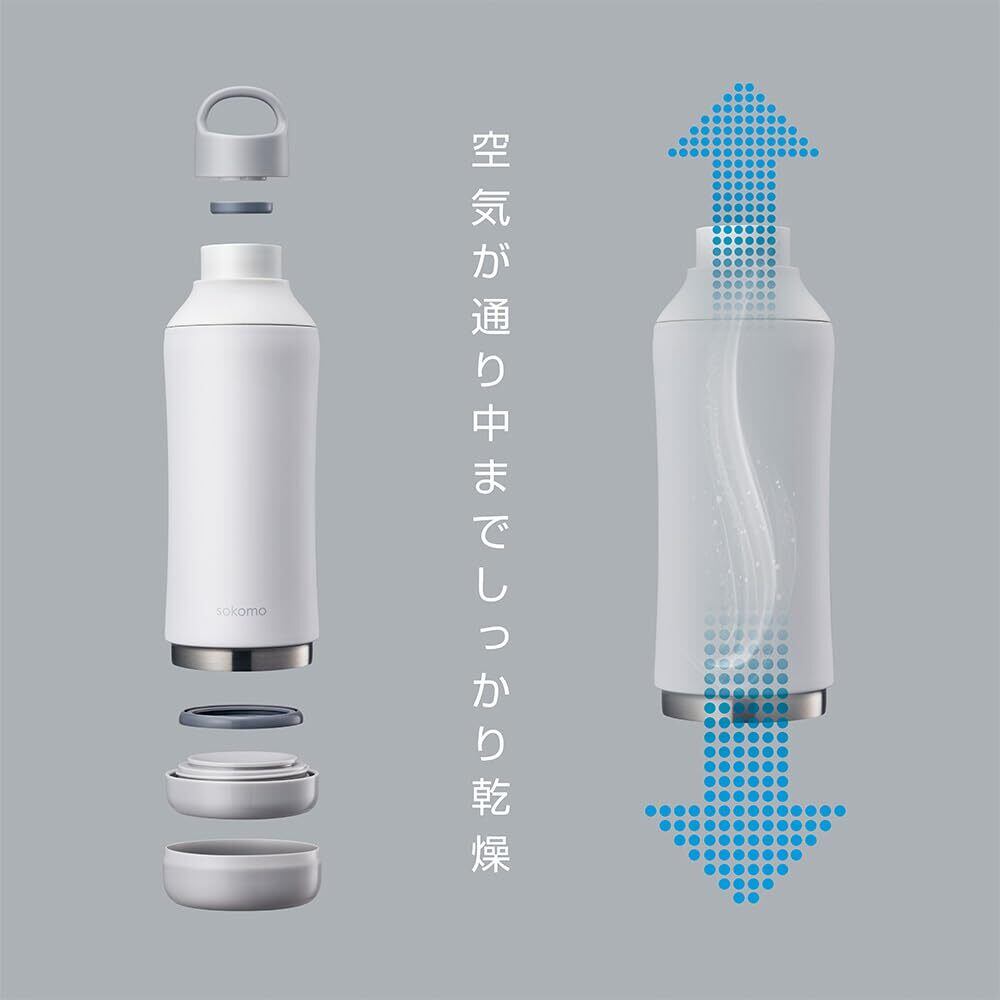 【そこまで洗えるボトル】ドウシシャ 水筒 ステンレスボトル 800ml 真空断熱 保温保冷 魔法瓶 洗いやすい ホワイト sokomo