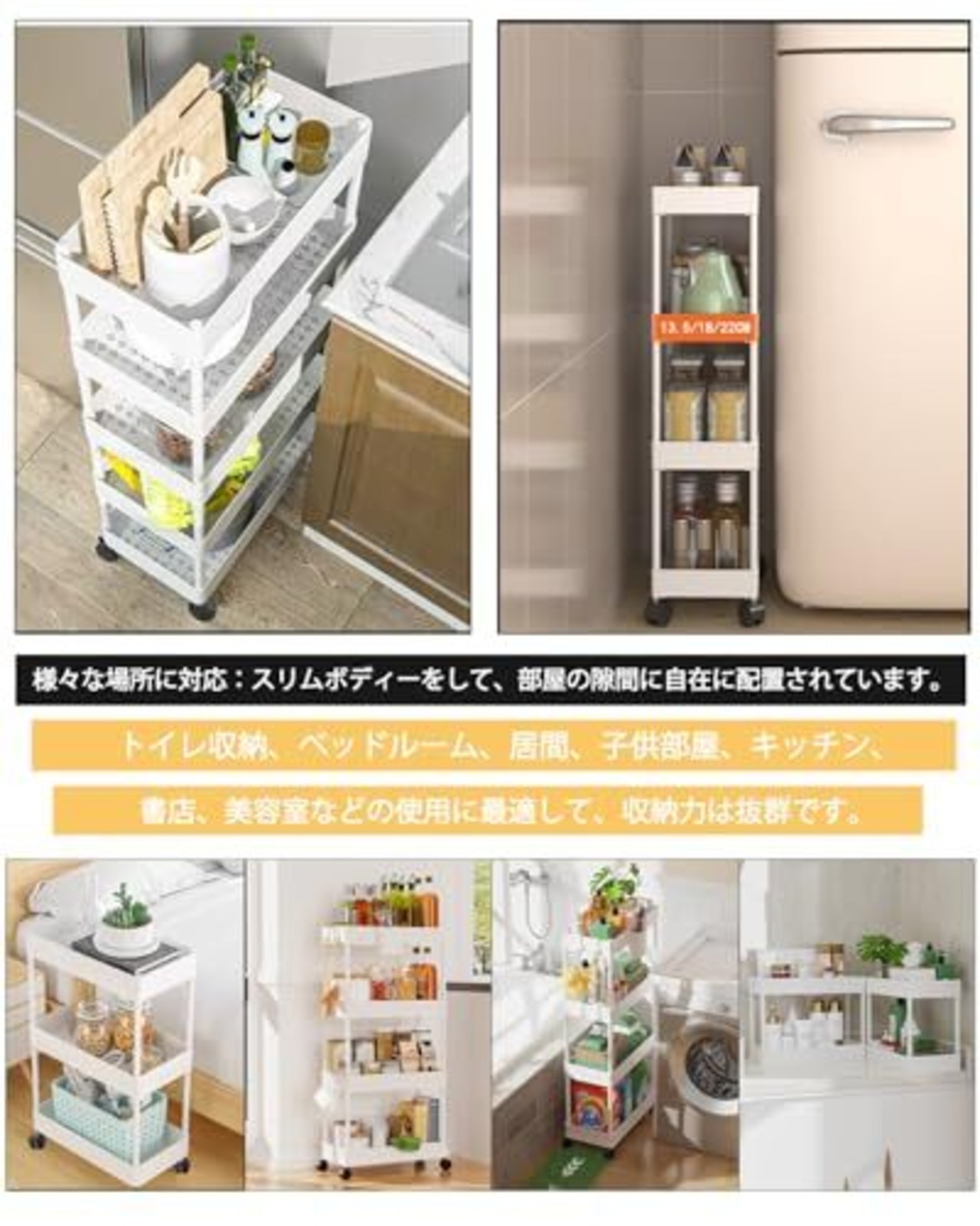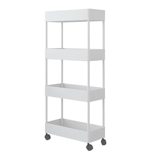 AYO キッチンワゴン 隙間収納 スリム 13cm 18cm 22cm 収納ラック 収納カート キャスター付き おしゃれ ペットボトル 小物 台所 洗面所 冷蔵庫横 (四段式-18cm, ホワイト)