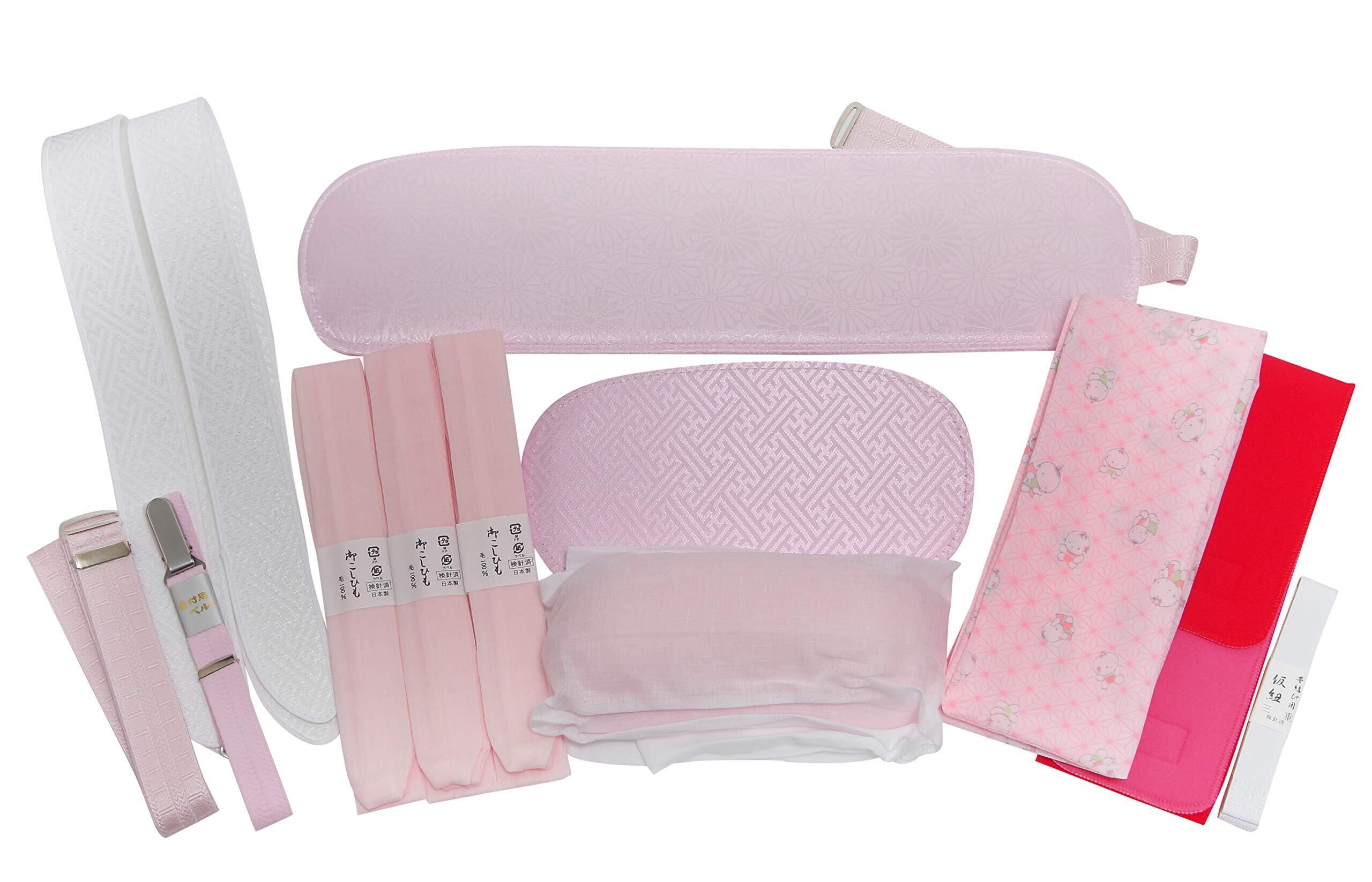 セット内容:帯枕、前板、後板、衿芯2本、着物ベルト、ウエストベルト、腰紐3本、伊達締め、マジックベルト、三重紐