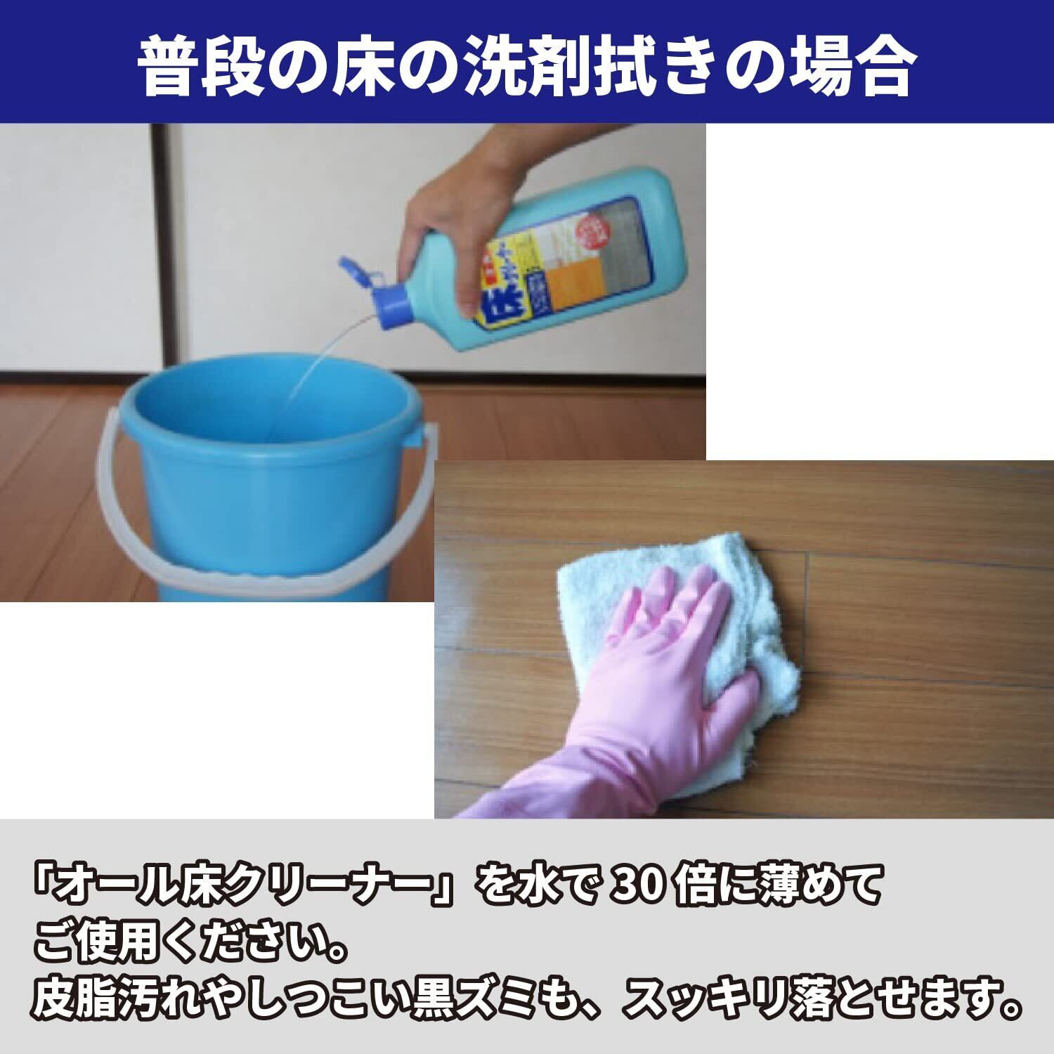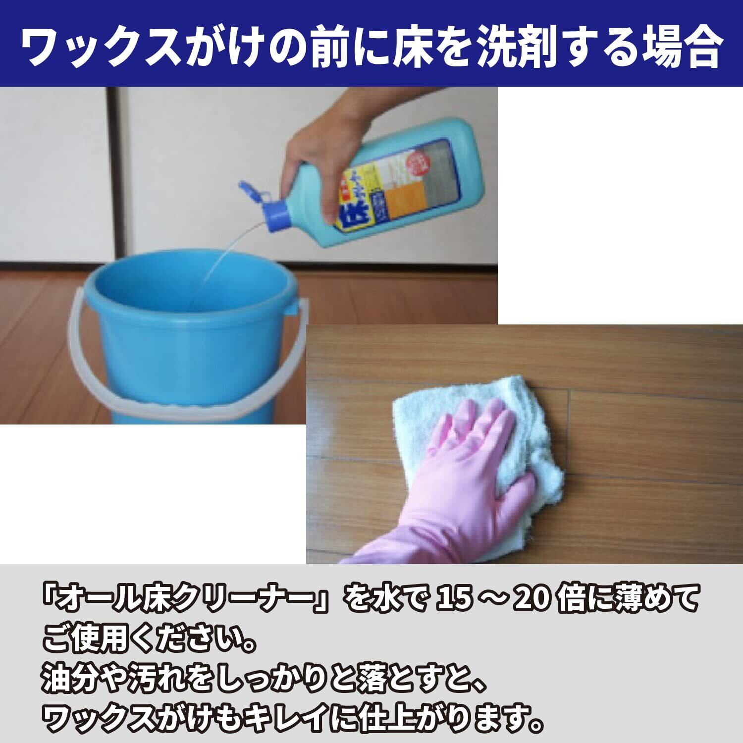 あらゆる床のしつこい汚れもスッキリ落とし、ワックスはくり剤としても使える住居用洗剤です。