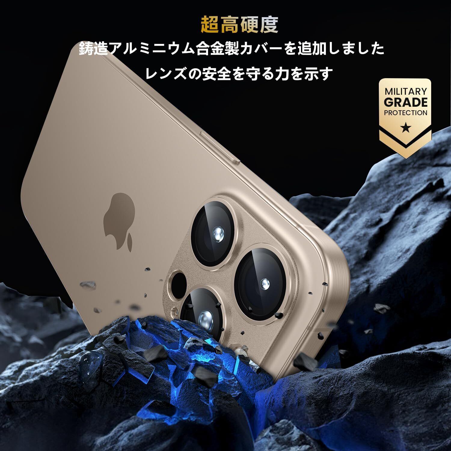 2.【全面保護・保護性高い!】3眼のレンズ部分だけではなく、四角い台座部分もカバーする一体型のデザインで、レンズに最高な保護力を提供しています。擦り傷や衝撃からカメラレンズをしっかりと守られます。アルミ合金製なので 耐久性は普通のガラス製のカメラフィルムより5倍UP!