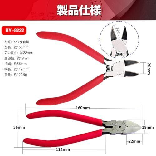 KIMLONTON BY8222小型ニッパ ニッパー薄刃 160mm 55#炭素鋼 ミニ精密作業用ニッパー 軟 ・ 硬線両用 銅線切断に DIY手作り プラモデル 手工業職人用 模型専用 繊細な作業工具