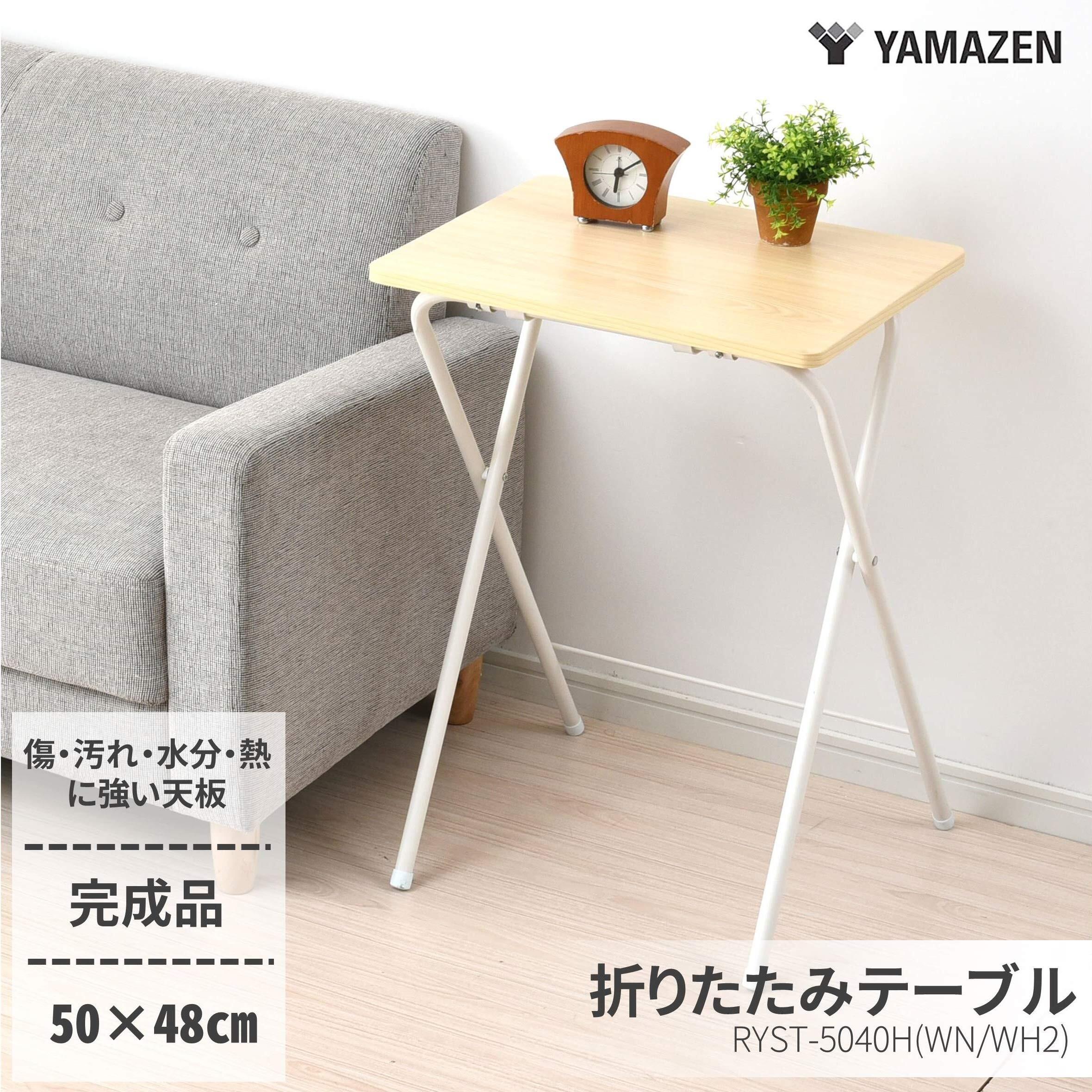 山善(YAMAZEN) テーブル ミニ 折りたたみ サイドテーブル 幅50×奥行48×高さ70cm ハイタイプ 傷・汚れ・水分・熱に強い天板(メラミン加工) なめらかな表面 角が丸い ウッドナチュラル/ホワイト RYST5040H(WN/WH2) 在宅勤務