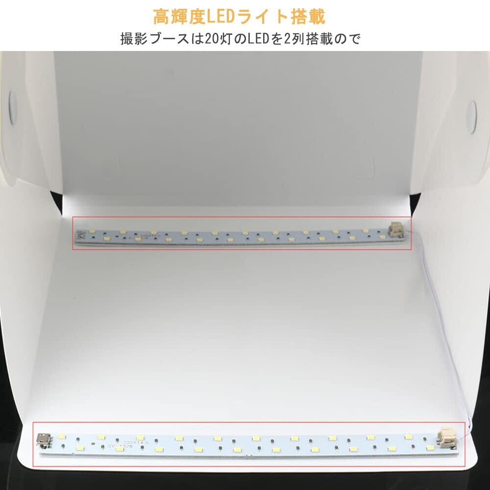 【折りたたみ撮影ボックス】持ち運び可能な折りたたみ構造の設計により、設置と持ち運びがさらに便利になります。 内蔵のLEDライトは平均的な光を提供し、写真が影や反射の影響を受けるのを防ぎます。