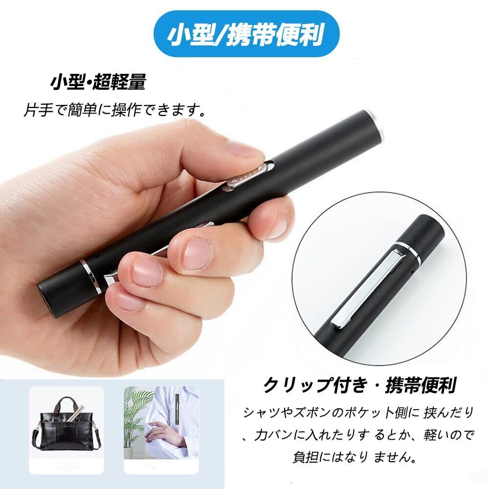 【充電モード】USBで充電したペンライトは簡単に充電できます。充電中の場合、青い提示ライトが点灯します。充電完了の場合は消灯します。