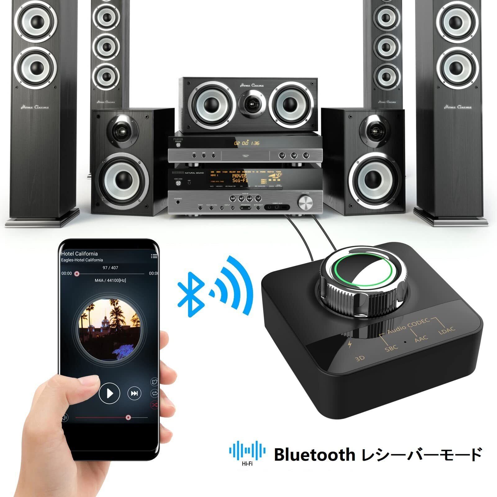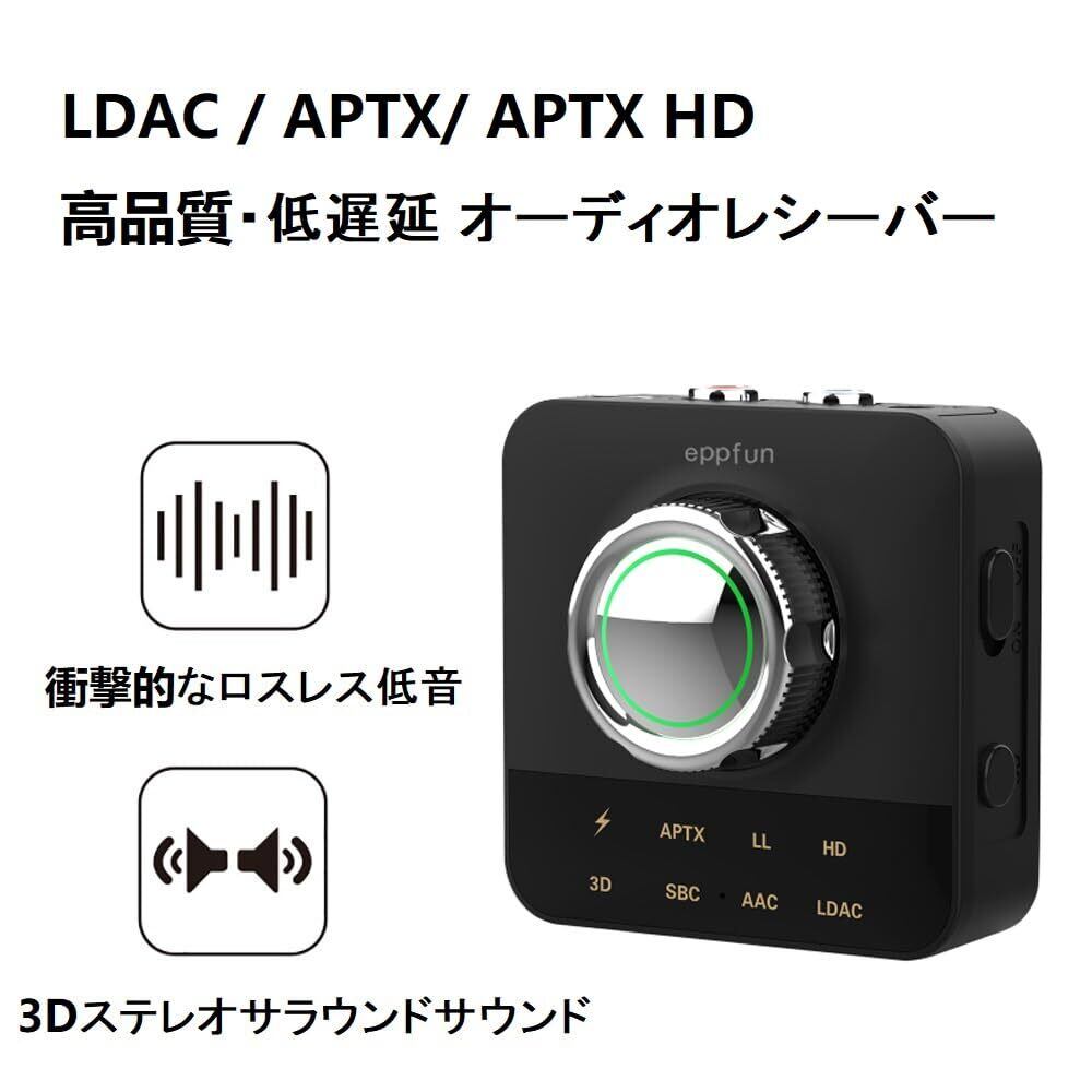 eppfun 3040R Pro Bluetooth LDAC オーディオレシーバー APTX/APTX HD/AAC 対応 3Dサウンド効果 ブルートゥース 受信機 3.5mm AUX/RCA 有線スピーカー/車載/ステレオシステム 等に適用