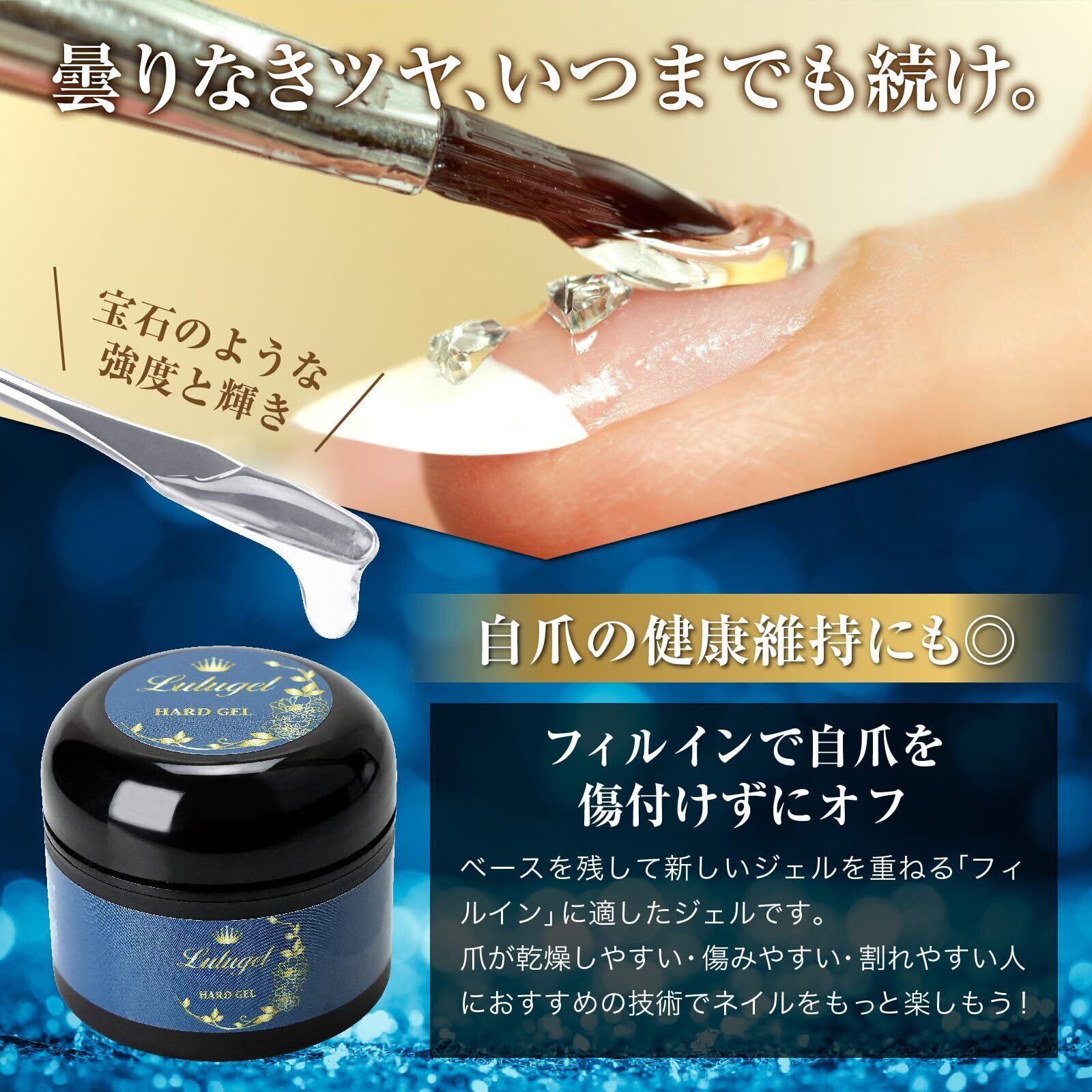 【強度特化】LULUGEL ジェルネイル ビルダージェル ハードジェルネイル 長さだし ジェル 15g 長持ち クリアジェル 厚み出し トップジェル 硬め トップコート 光沢 ハードジェル ネイル 補強 透明