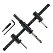 【穴あけ可能サイズ】:直径:30~200mm(有効サイズ)まで可変、 軸径10mm、厚さ約50mmまでカットが可能です。穴あけ可能深さ:片側/25mm・両側/50mm。正確にサイズ調整可能:ミリ単位で調節可能。好きなサイズの円の穴あけ可能。