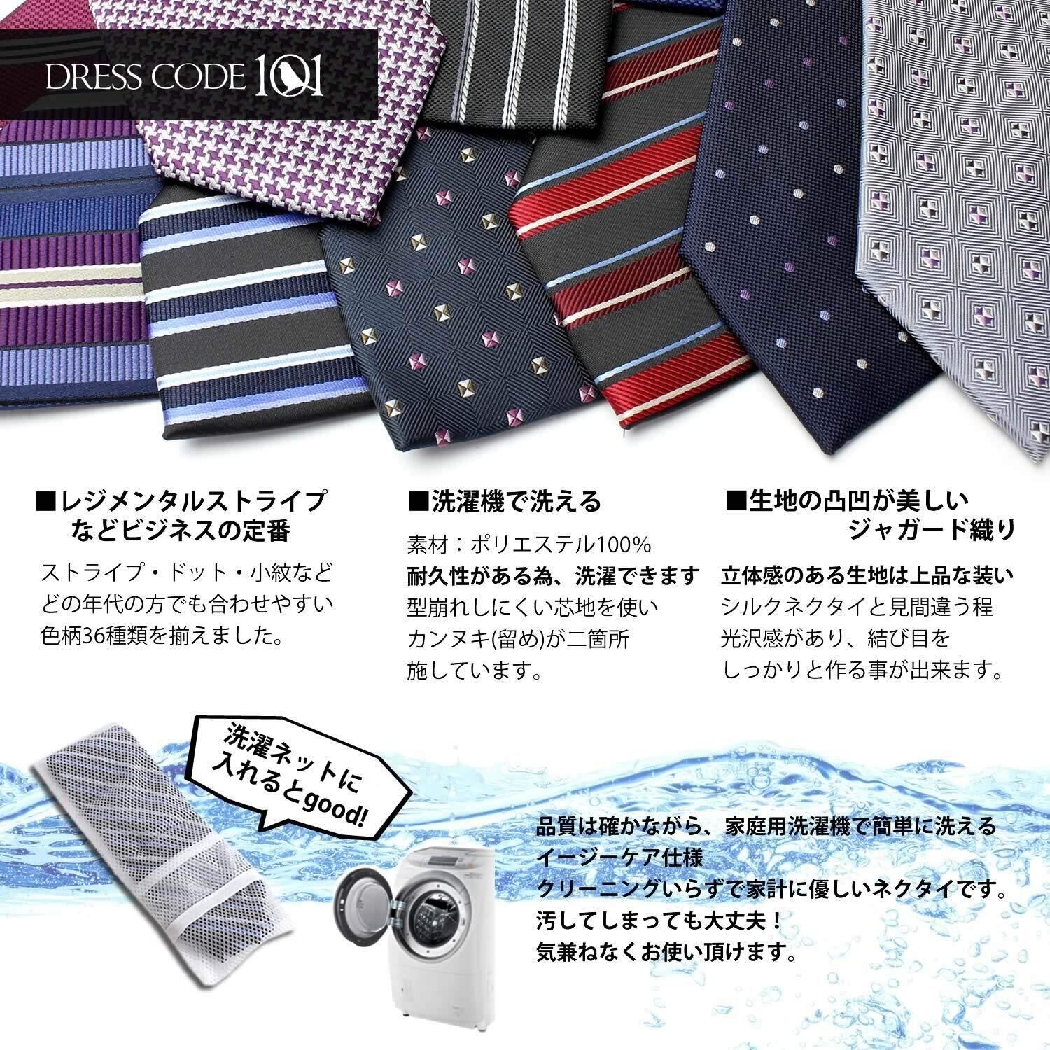 [ドレスコード101] 洗えるネクタイ ビジネスシーンにぴったり 面接・就活 プレゼントにも最適 豊富なデザイン 自宅で洗濯できるから清潔 メンズ TIE-012 ネイビー Free 幅8cm×全長142cm