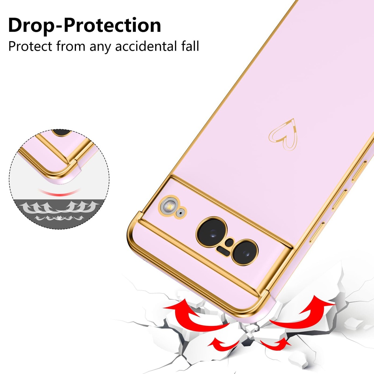 ZTOFERA Google Pixel 8 用 ハートケース おしゃれ 韓国 かわいい グーグル ピクセル 8 ケース 柔軟な TPU シリコン メッキ加工 ソフト 軽量 耐衝撃 携帯カバー 女性 心パターン Pixel 8 スマホケース ワイヤレス充電対応 (パープル)