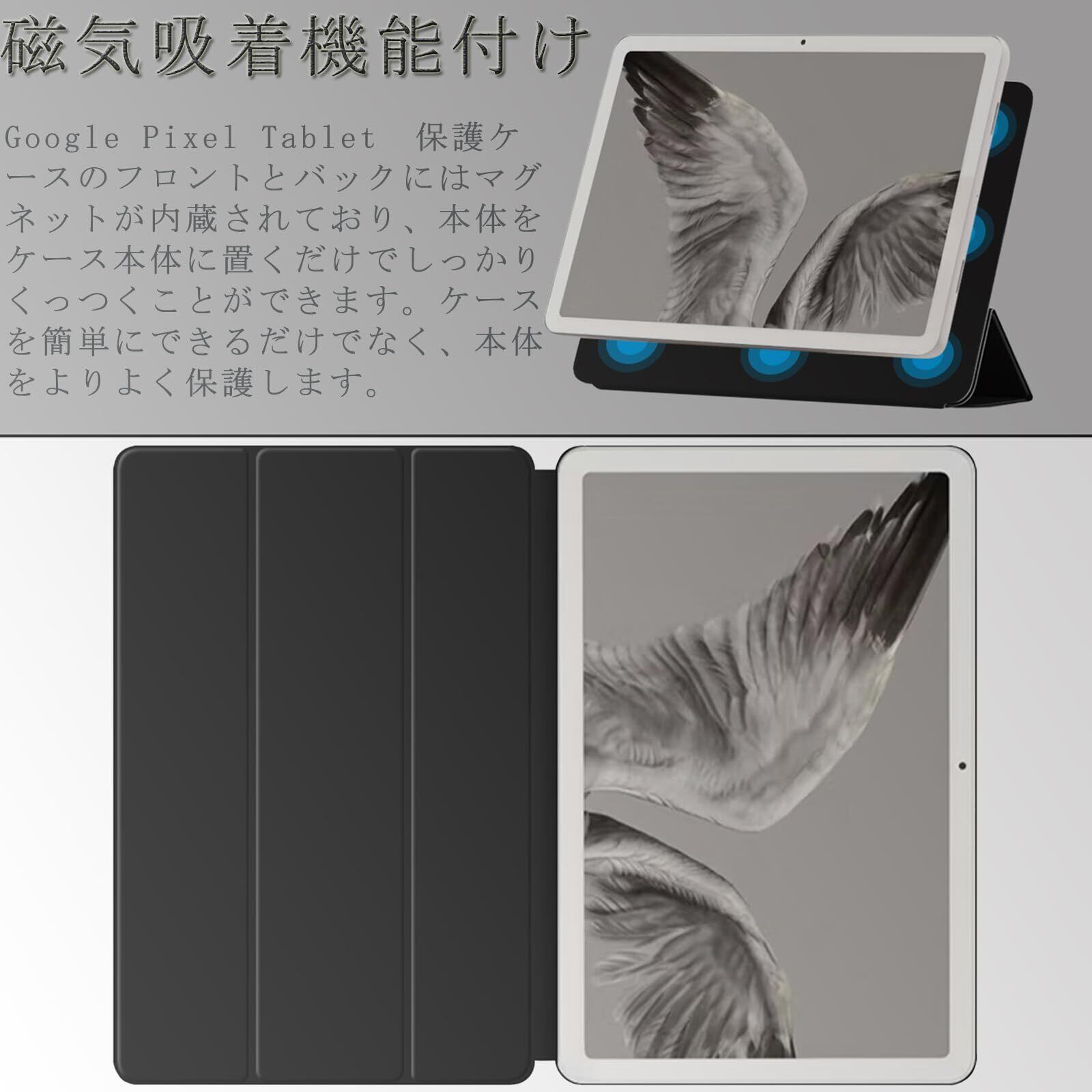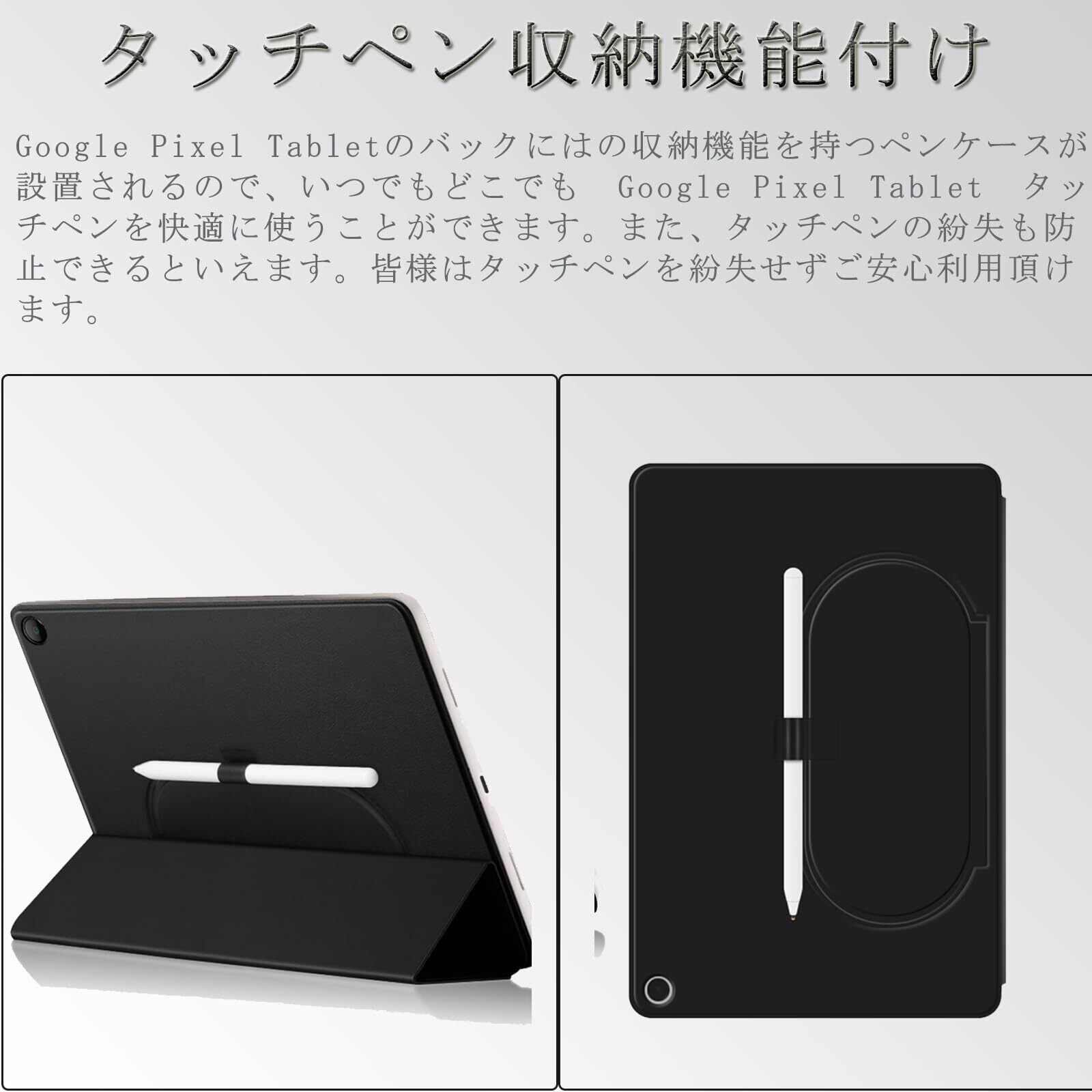 Miimall Google Pixel Tablet 2023 専用 ケース 【磁気吸着+タッチペン収納】グーグル ピクセル タブレット カバー PUレザー ワイヤレス充電対応 スタンド機能 傷・汚れ防止 薄型 軽量 手触りが良い Google Pixel Tablet 対応(ブラック)