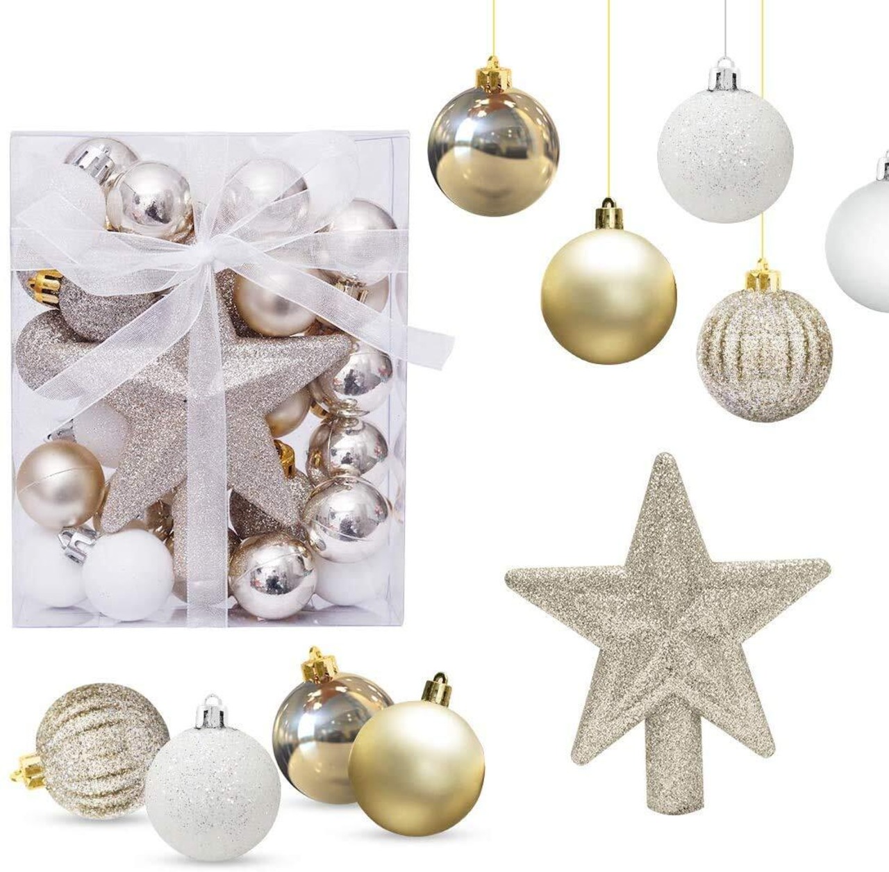 【目新しい設計】銀&金&白を融合とした優雅色のボールオーナメントは、クリスマスツリーやお部屋を飾るオブジェにピッタリ!光が当たるとツヤのある表面がキラキラと輝き、華やかな雰囲気をプラスしてくれる。自由にアレンジ:お気に入りの色と照明を組み合わせて、独自のクリスマスツリーを作成できます。これらのオーナメントはどんな場所にも馴染みやすいです。家族や子供などとクリスマスツリーを飾って、クリスマスのムードを楽しみます。
