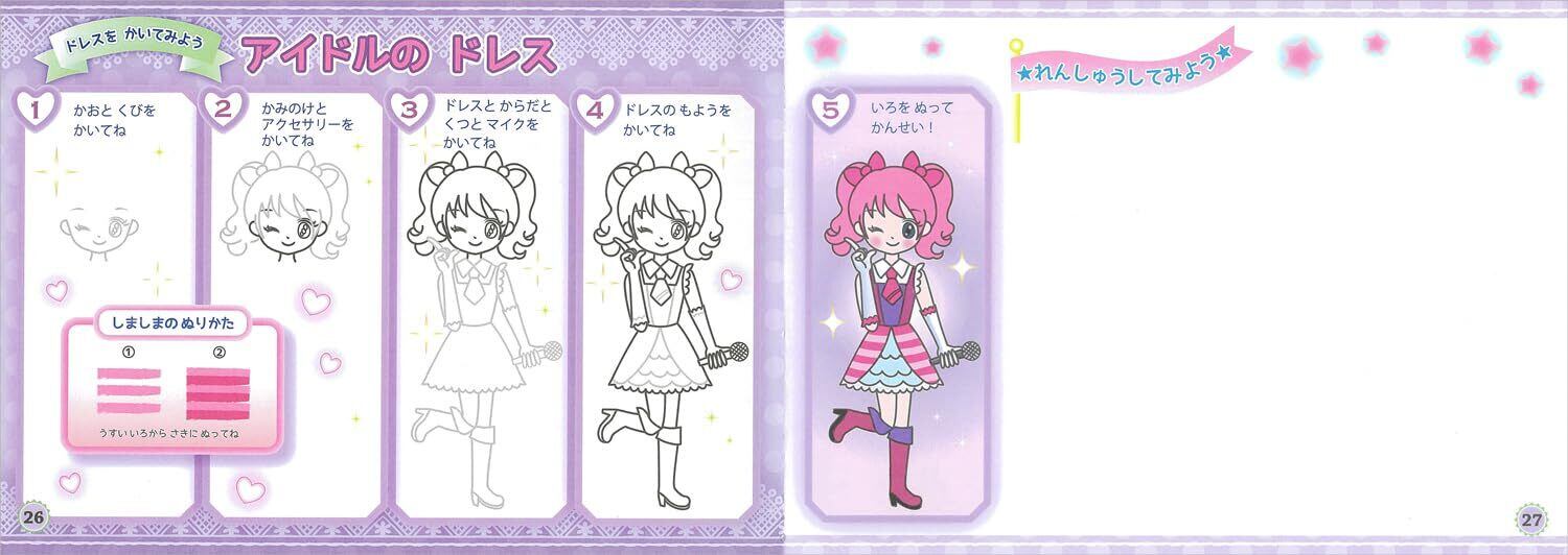 【内容】かわいい女の子のかきかたをレッスンして、じょうずになるコツを教えてくれます。デザイナーのワンポイントアドバイス付きで、ぬりえからドレスのデザインまで、レベルアップを目指せます!