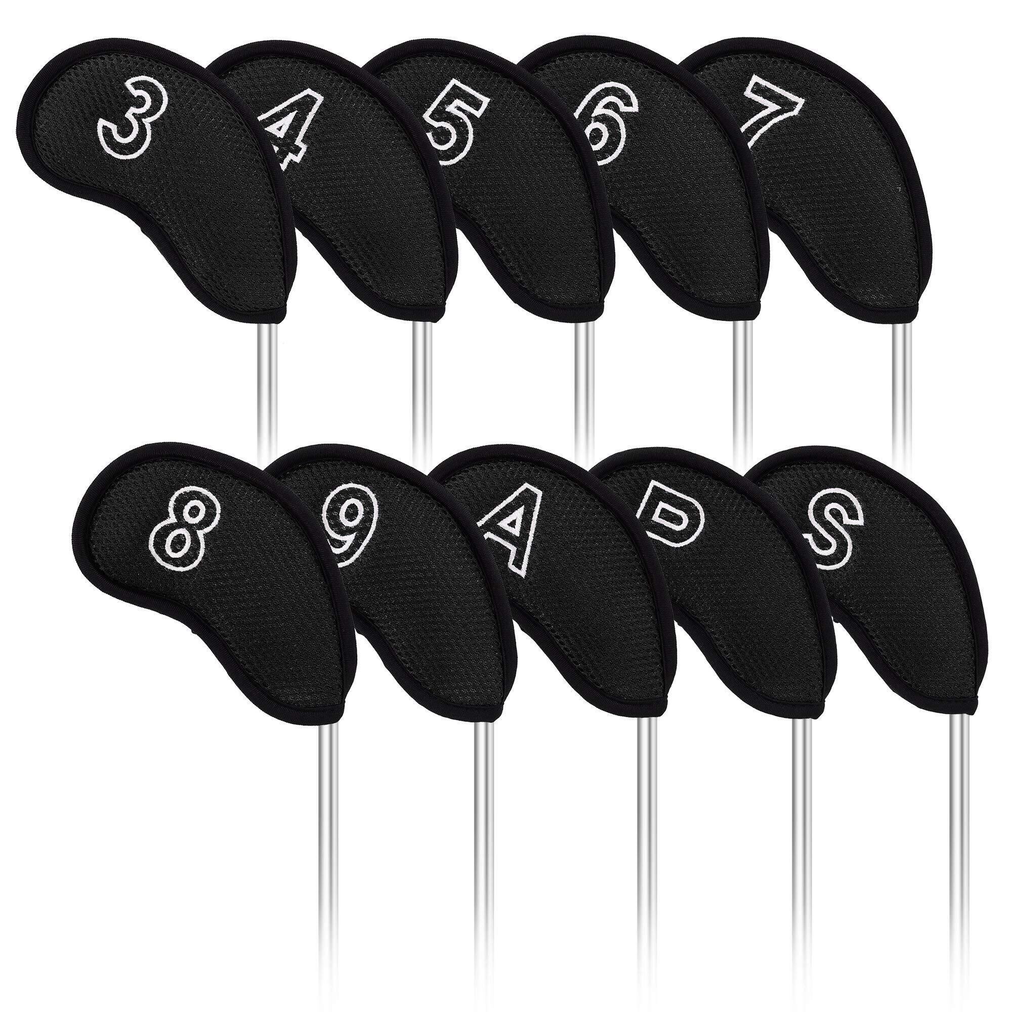 ゴルフアイアンカバー 超軽量網状 ヘッドカバー 10枚セット(3-9、P、A、S)番手刺繍 マジックテープ開閉
