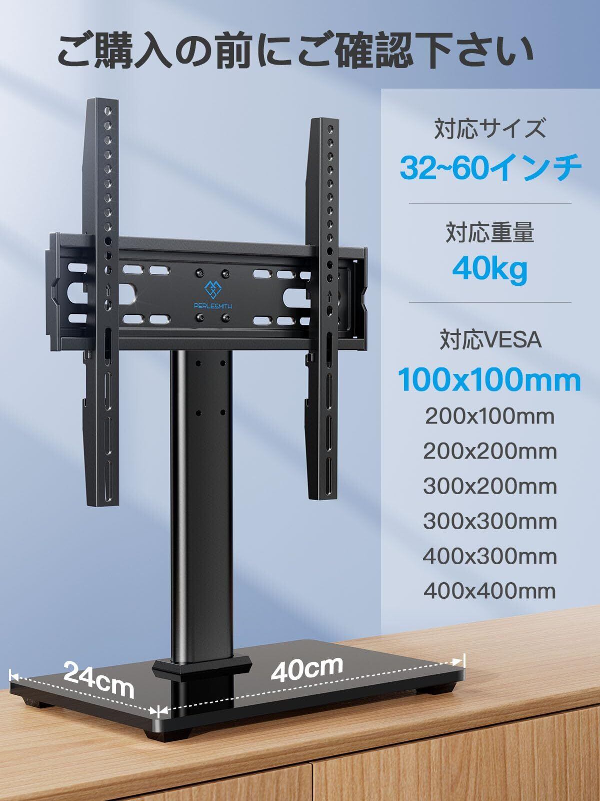 PERLESMITH テレビスタンド tvスタンド tv stand テレビ台 ロータイプ vesa 卓上 モニター 壁寄せ 壁掛け 32~60インチ対応 VESA規格400x400mmまで 耐荷重40kg 6段階高さ調節 ブラック