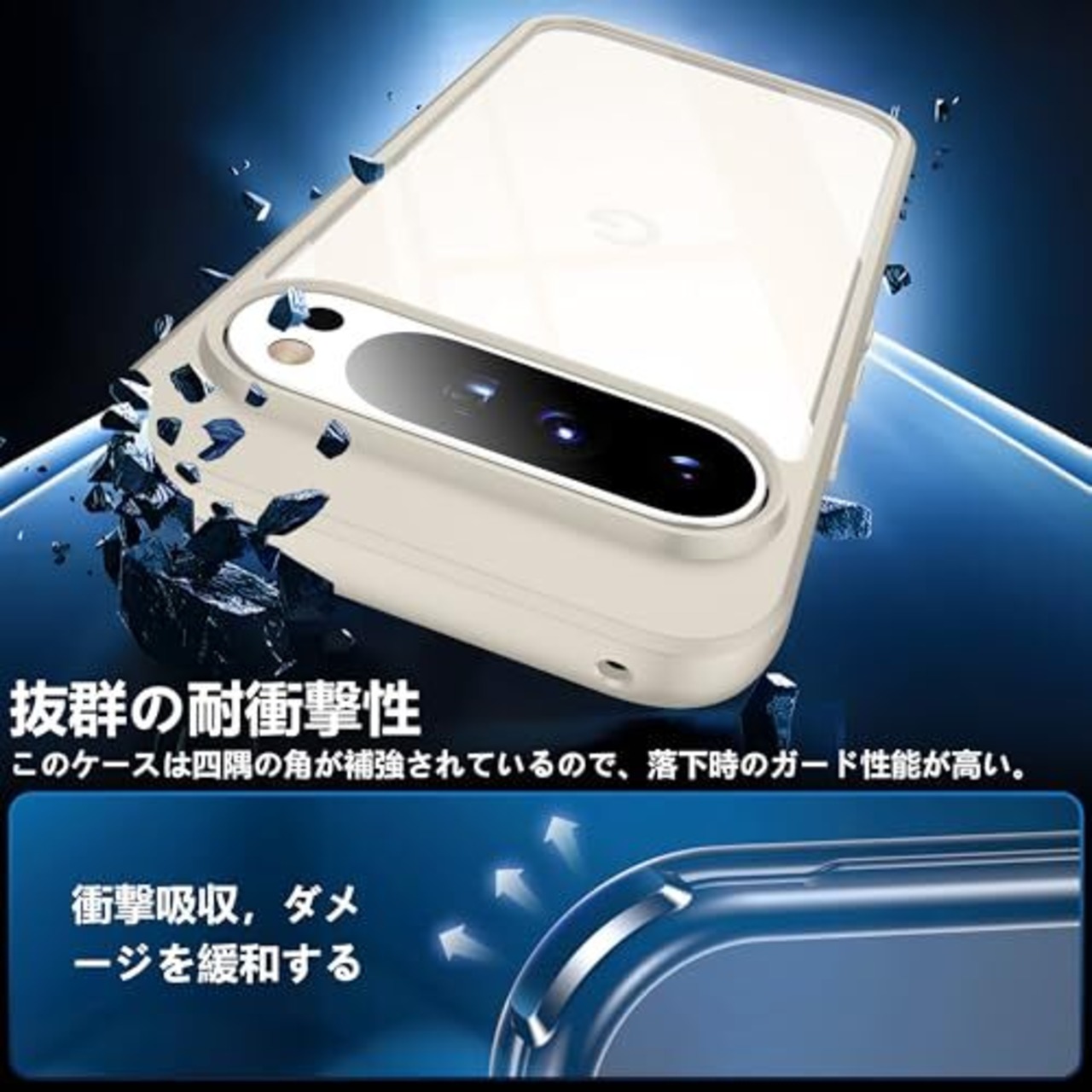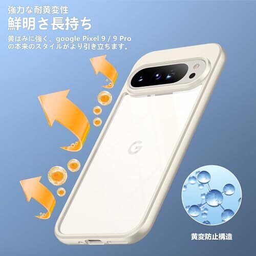 【圧倒的な透明感】透き通った高い透明度を誇り、pixel 9/9 pro本来の美しいデザインとカラーをそのままに楽しめます。耐黄変分子充填技術を採用し、常に透明感を保ち、長時間使用しても黄色に変わりません。グーグル ピクセル 9/9 pro ケースの背面は放熱性良いポリカーボネート素材で、熱を効果的に放散し、バッテリーにとても優しいです。