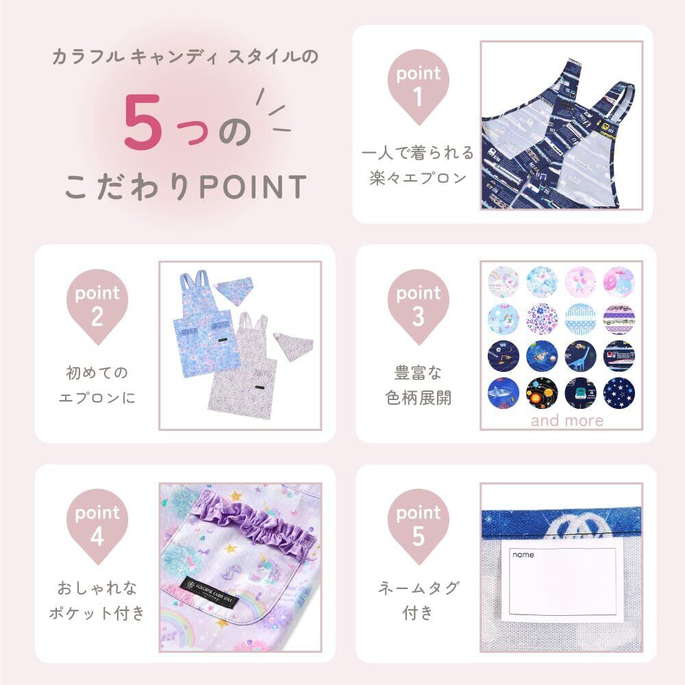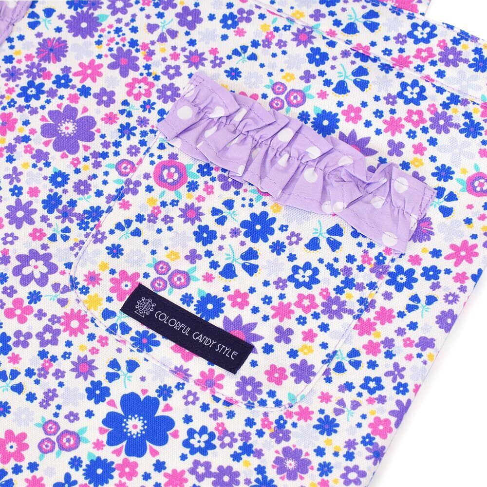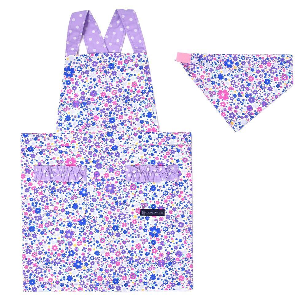 COLORFUL CANDY STYLE 子供用 キッズエプロン 女の子 かぶるだけ バッククロス 三角巾 セット 100-120 フラワー模様のエアリーシャワー(ラベンダー) N7903510
