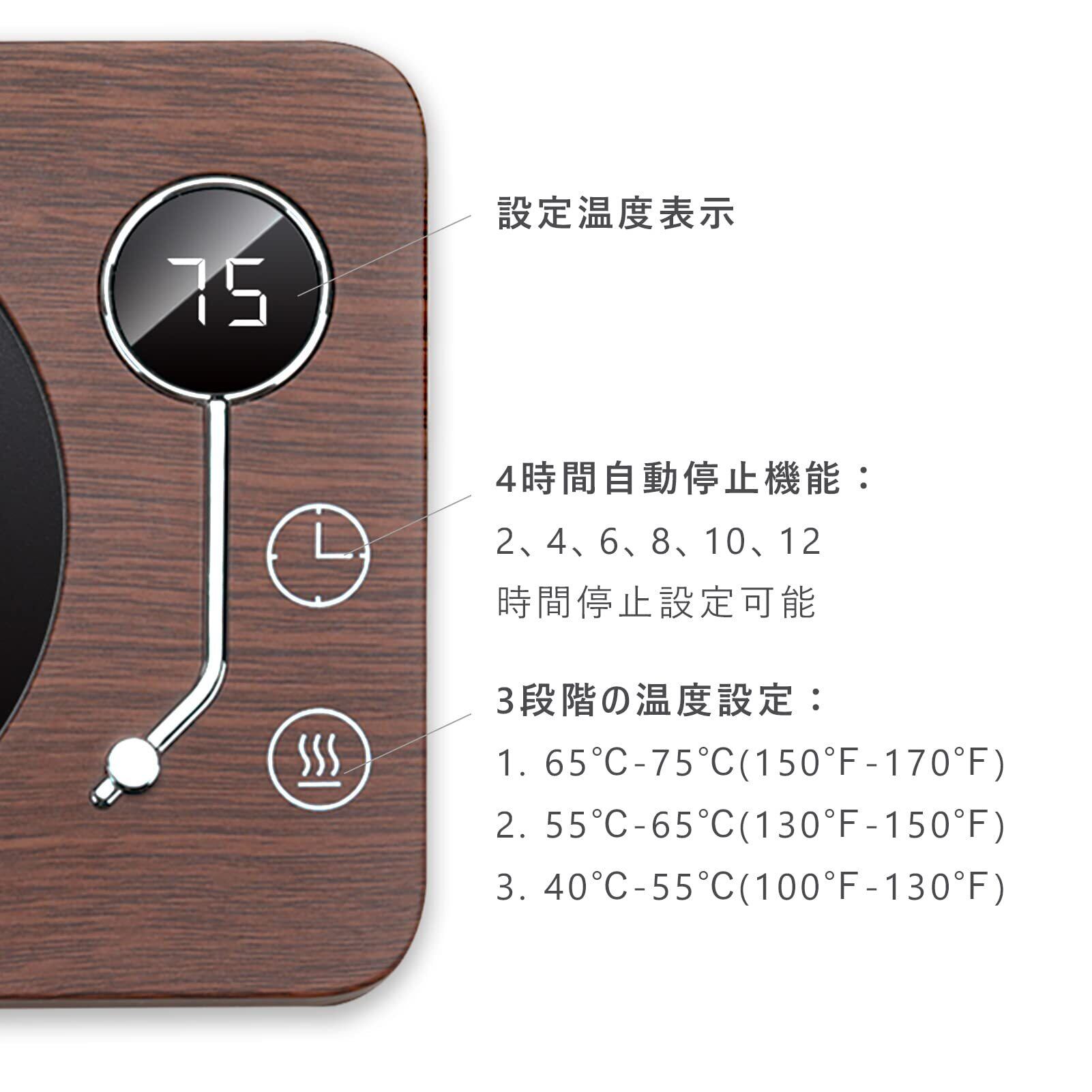 Kyerlish カップウォーマー コーヒー保温コースター マグカップウォーマー ドリンクウォーマー 3段温度設定55℃ 65℃ 75℃ 重力センサー付き 静音 自動電源オフ コップ保温 水/お茶/コーヒー/牛乳など飲み物 加熱コースター オフィス/家庭用 友達/家族へのプレゼント PSE安全認証済み AC100V/30W(木目-75℃ 50/60Hz全国対応)