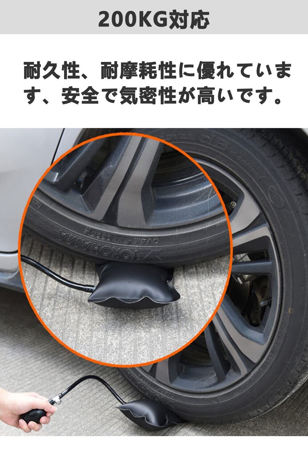 【エアージャッキ】サイズ:約16*15.5cm、チューブの長さ約:25cm、2個セット、耐荷重が200㎏ほどあります。