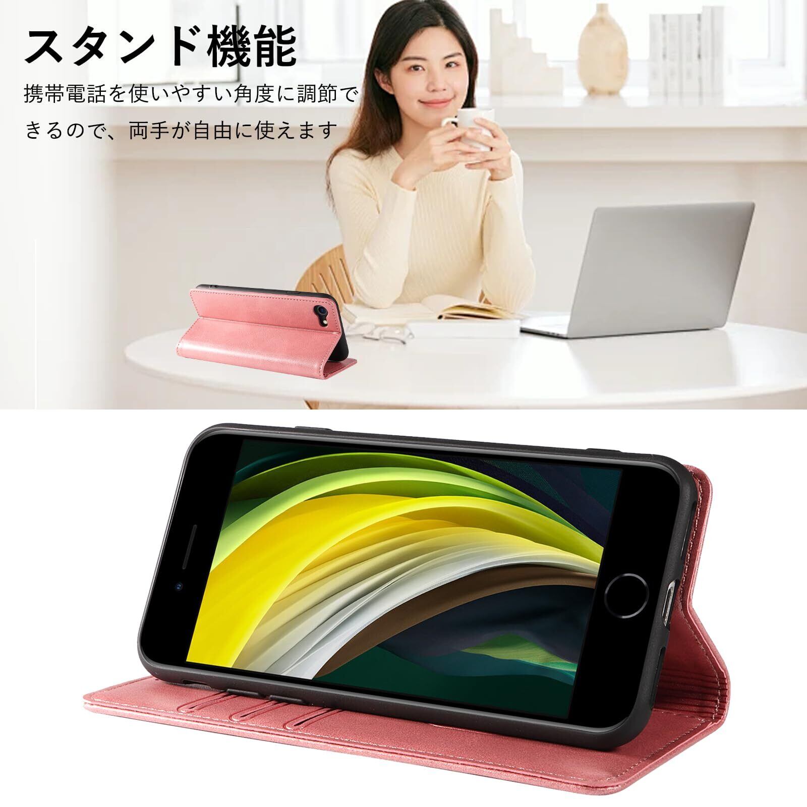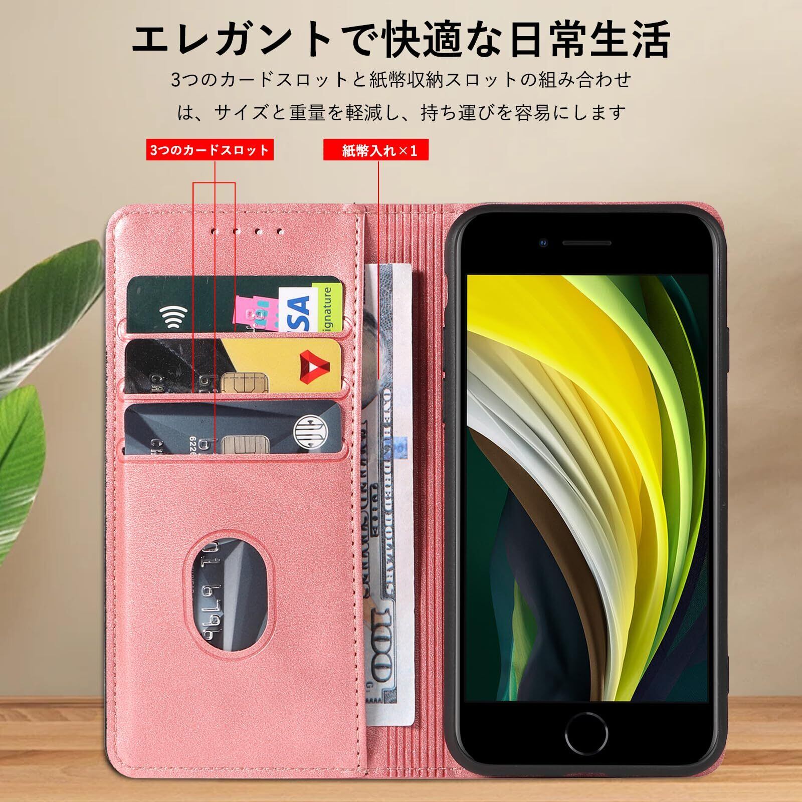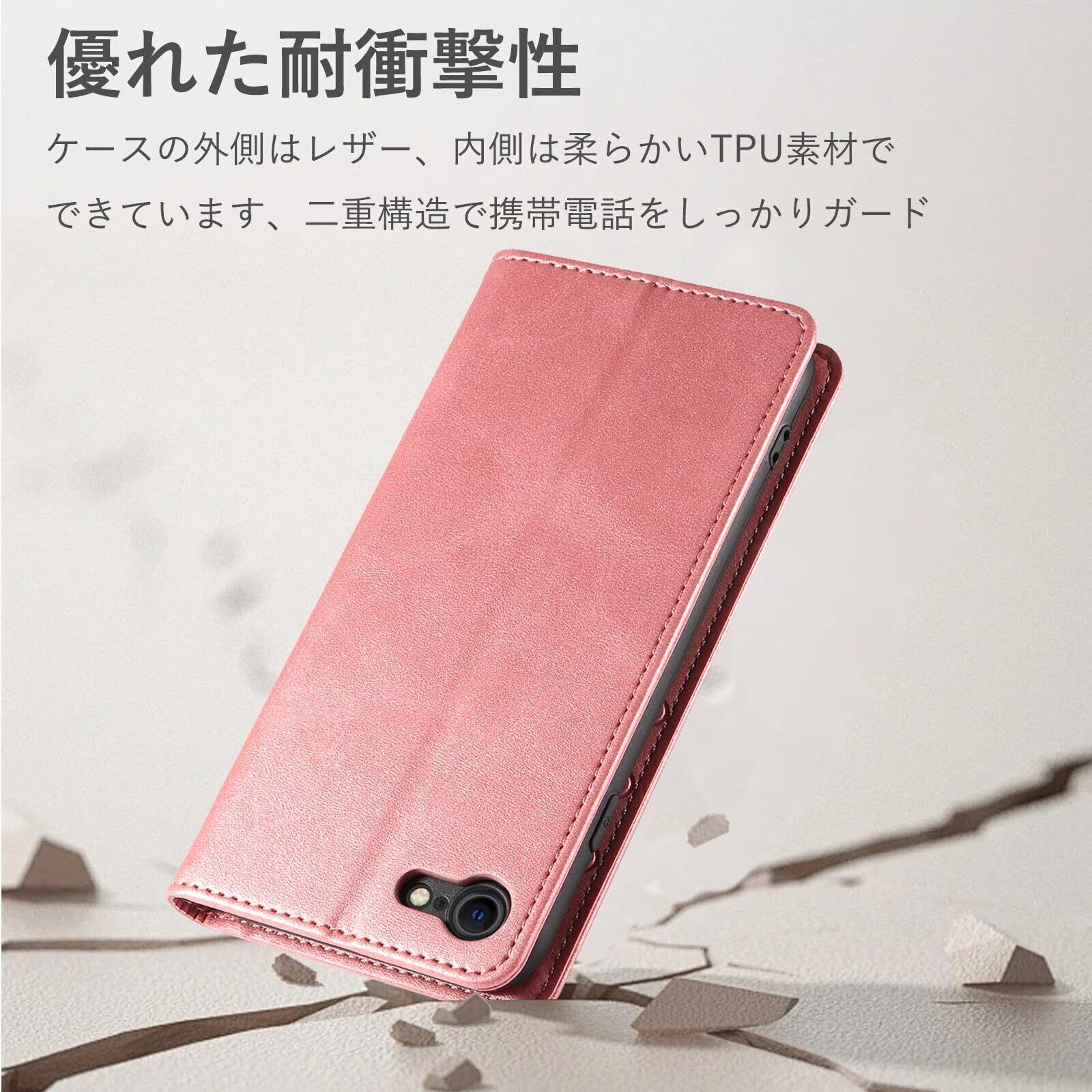 iPhone SE ケース 手帳型 iPhone SE 第3世代 第2世代 iphone8 iphone7 スマホケース 携帯カバー レザー 快適な手触り 軽量 耐衝撃 汚れに強い マグネット式 カード収納 スタンド機能 se 4.7インチ対応 EUMADOVE (ピーチ, iPhone SE3/SE2/7/8)