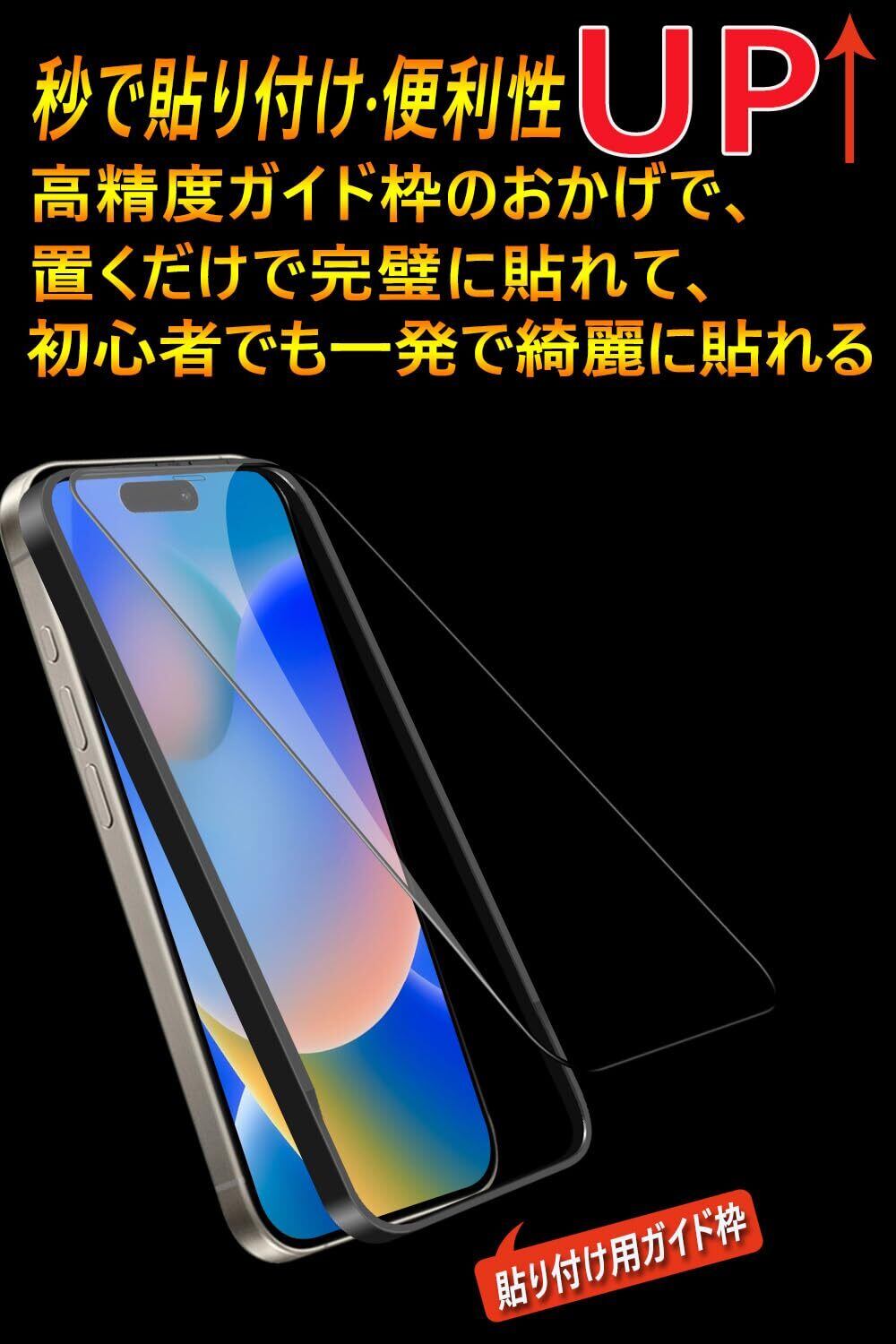 【置くだけで装着!ガイド枠付き・保護ケースと干渉なし】専用の貼り付けガイド枠が同梱されています。ガイド枠を利用することで、初心者でも簡単に貼り付けます。また、自己吸着できるシリコン粘着シートで、簡単的に貼り付けます。ガラスを液晶に置くだけで自然に吸着、簡単に気泡が抜いて行くので、誰でも簡単、綺麗に貼ることができます。より一体感のある仕上がりを実現しました。本体の縁にスペースを残すデザインを取っており、ほどよいサイズ感で、液晶画面を覆いながら、スマホケースと干渉せず併用できます。