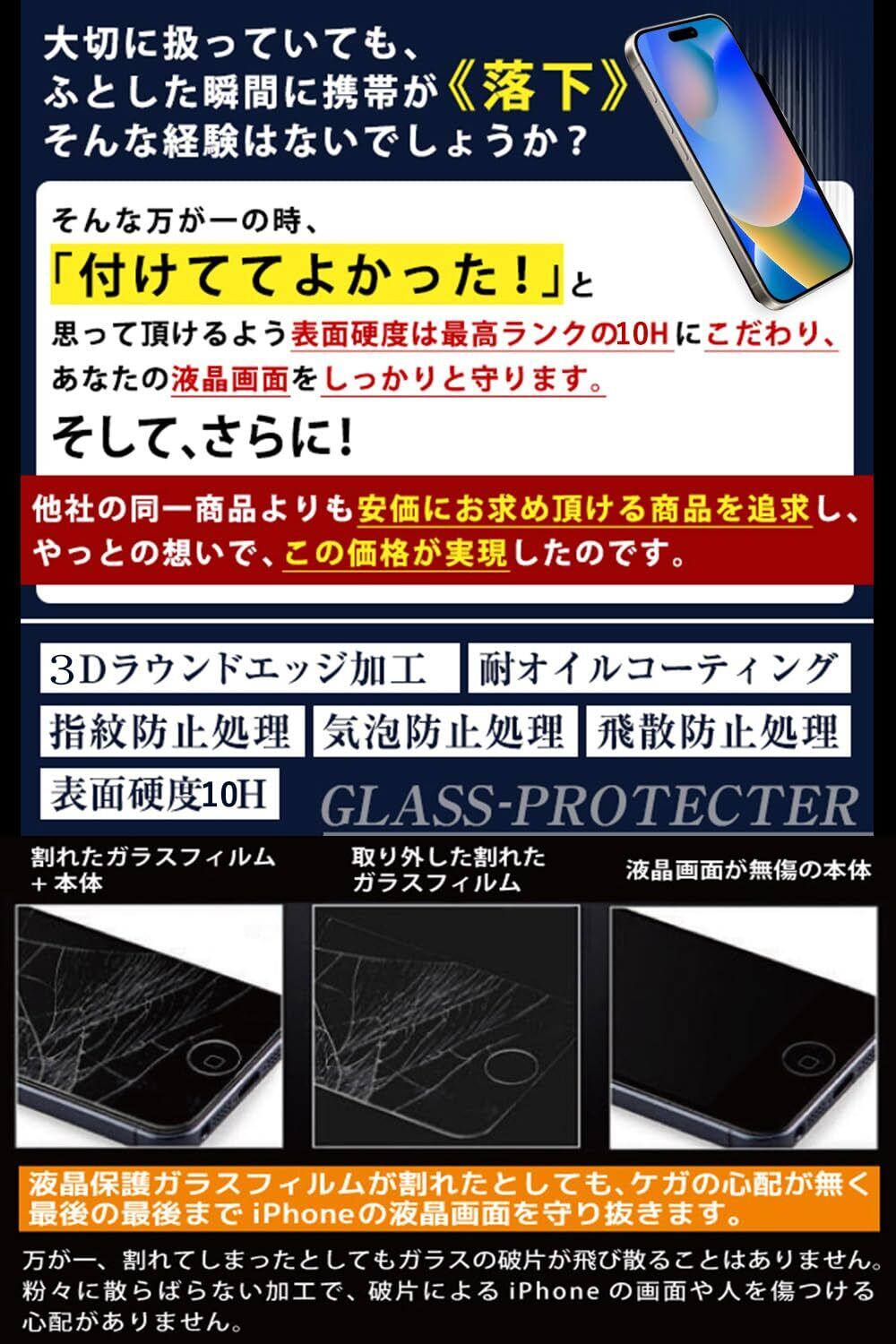 【日本旭硝子素材・最強硬度10H・飛散防止】ガラスフィルム一般的な液晶保護フィルムの約6倍の強度。衝撃は強化ガラスに吸収されますので、ディスプレイにかかる衝撃負荷を軽減し。ディスプレイが破損することを防ぎます。万が一の破損時も飛散防止加工によって破片はフィルムに張り付いた状態で破片がほとんど飛び散らない安全性の高いガラスになっています。