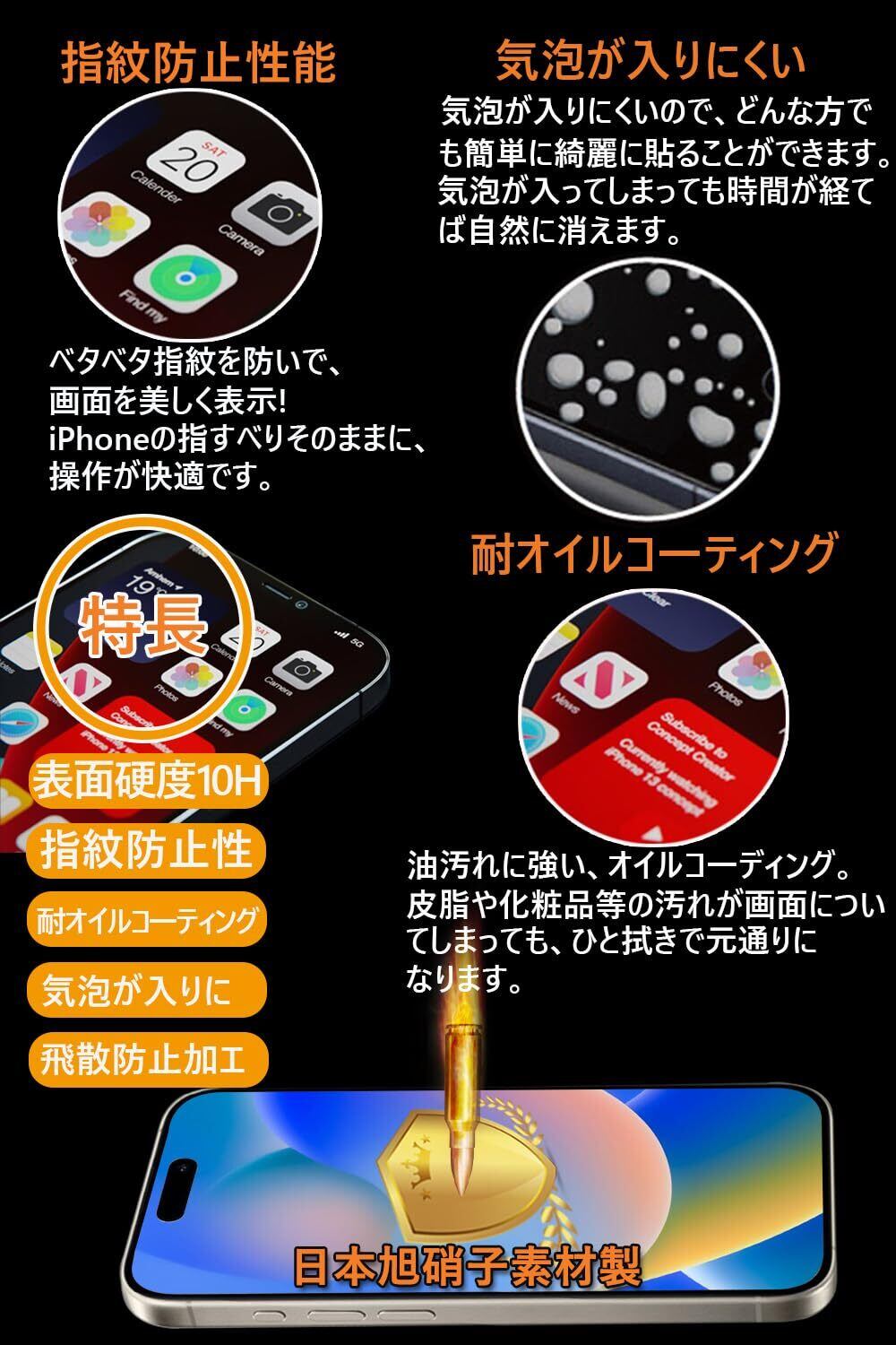 【快適なタッチ感!指紋防止·撥水撥油技術】真空蒸着技術を利用し、表面にナノコーティングを採用し、指紋防止薄膜を形成することで、滑らかであると同時にパワフルな耐油汚れ・汗染み・指紋性能を備え、汚れ防止効果はより長く持続でき、頻繁にスマホを拭く悩みがなくなります。