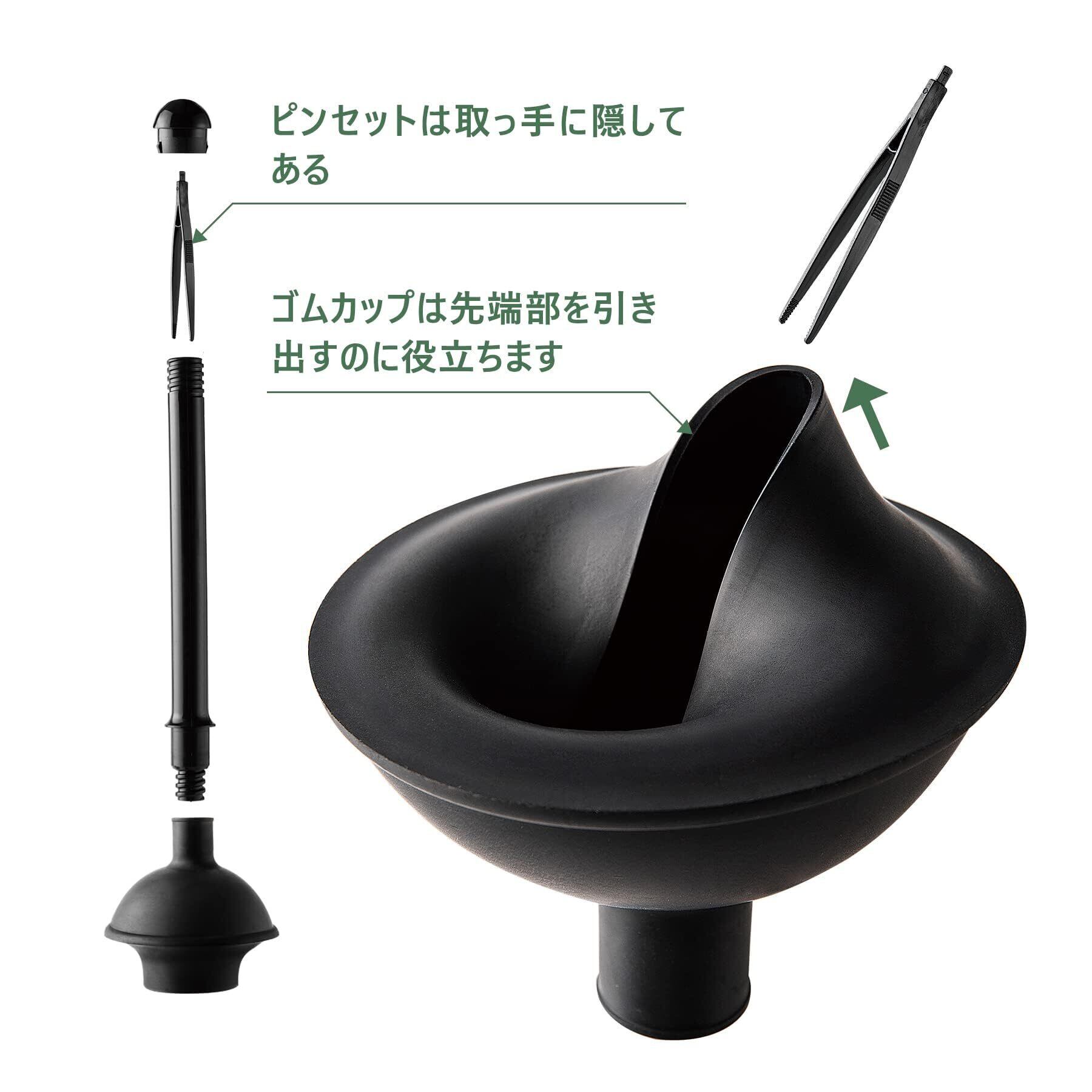 【洋式・和式兼用タイプ】: ゴムカップは先端部を引き出すと洋式のつまりに、押し込むと和式にもご使用できます。ピンセットが付属しており、ゴムカップは先端部を引き出すことができます。便利で衛生的で、手を触れる必要がありません。