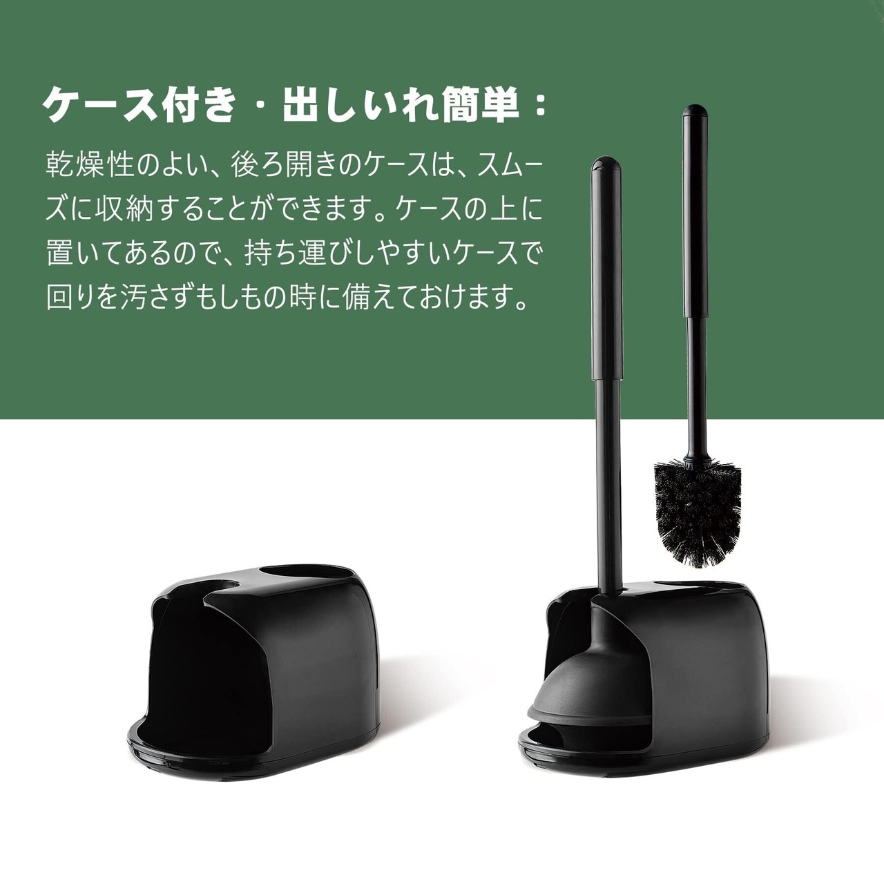 【コンパクトで便利な収納】: 2 in 1トイレブラシとラバーカップの2点がセットになっていて、収納ケースがついているので収納が簡単で、床を清潔に乾燥させず、キレイに便器の横に収納できます。コンパクトなデザインで、浴室のスペースを無駄にしません。持ち運びしやすいケースで回りを汚さずもしもの時に備えておけます。